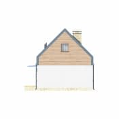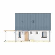 Projekt domu Ewelina A. Mały dom o minimalnym programie dla czteroosobowej rodziny. Może też pełnić funkcję wygodnego domu letniego. Czytelny i wygodny podział na część dzienną i nocną. Wygodny układ pokoju dziennego połączonego z aneksem kuchennym i mającym wyjście na duży zadaszony taras. Dodatkowe duże poddasze nieużytkowe dostępne przez zsuwane schody daje możliwość adaptacji na cele mieszkalne. Zminimalizowane powierzchnie komunikacyjne dopełniają pełną wygodę i funkcjonalność zawartą w niezbędnej przestrzeni. Możliwe jest oddzielenie kuchni od pokoju dziennego. Od strony sypialni możliwa jest dobudowa garażu lub wiaty na samochód. Możliwe jest ogrzewanie domu kominkiem w oparciu o system kanałów rozprowadzających ciepłe powietrze i centrali rozdzielczej.Konstrukcja