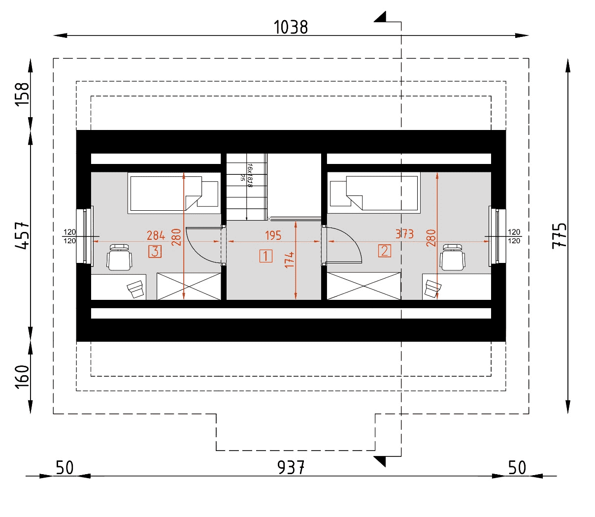 - rzut więźby dachowej – wymiary i rozmieszczenie elementów konstrukcji dachu.