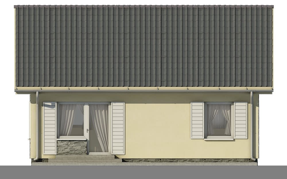 Dom mieszkalny jednorodzinny. Jedna sypialnia, pokój dzienny z aneksem kuchennym, łazienka i przedsionek, poddasze. Posiadamy wersję z garażem – D199 Paula oraz D199 Paula_IKonstrukcja