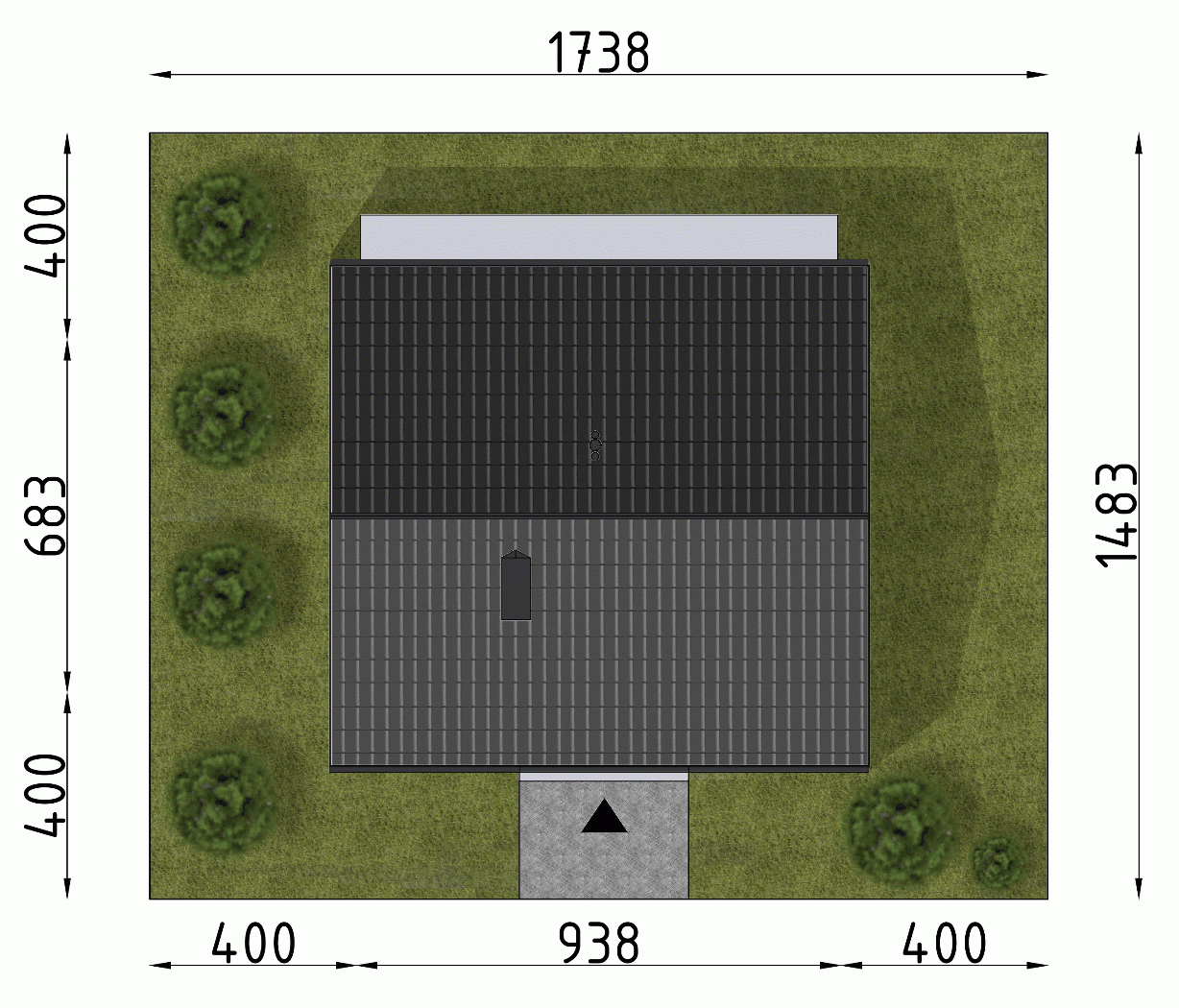 - Minimalne wymiary działki17.38 x 14.83m