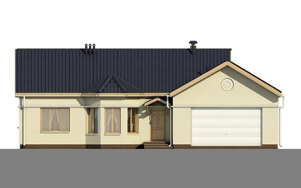 Nieduży dom o pełnym programie dla czteroosobowej rodziny. Czytelny I wygodny podział na część dzienną I nocną z wydzielonym jednym pokojem sypialnym mogącym pełnić funkcję gabinetu lub sypialni babci lub teź pokoju gościnnego. Duża kuchnia z wygodnym I reprezentacyjnym aneksem jadalnym ulokowanym w przeszklonym wykuszu. Dwie niezależne łazienki duży zadaszony taras oraz zminimalizowane powierzchnie komunikacyjne dopełniają pełną wygodę I funkcjonalność zawartą w niezbędnej przestrzeni. Na uwagą zasługuje duży garaż na dwa samochody.Konstrukcja