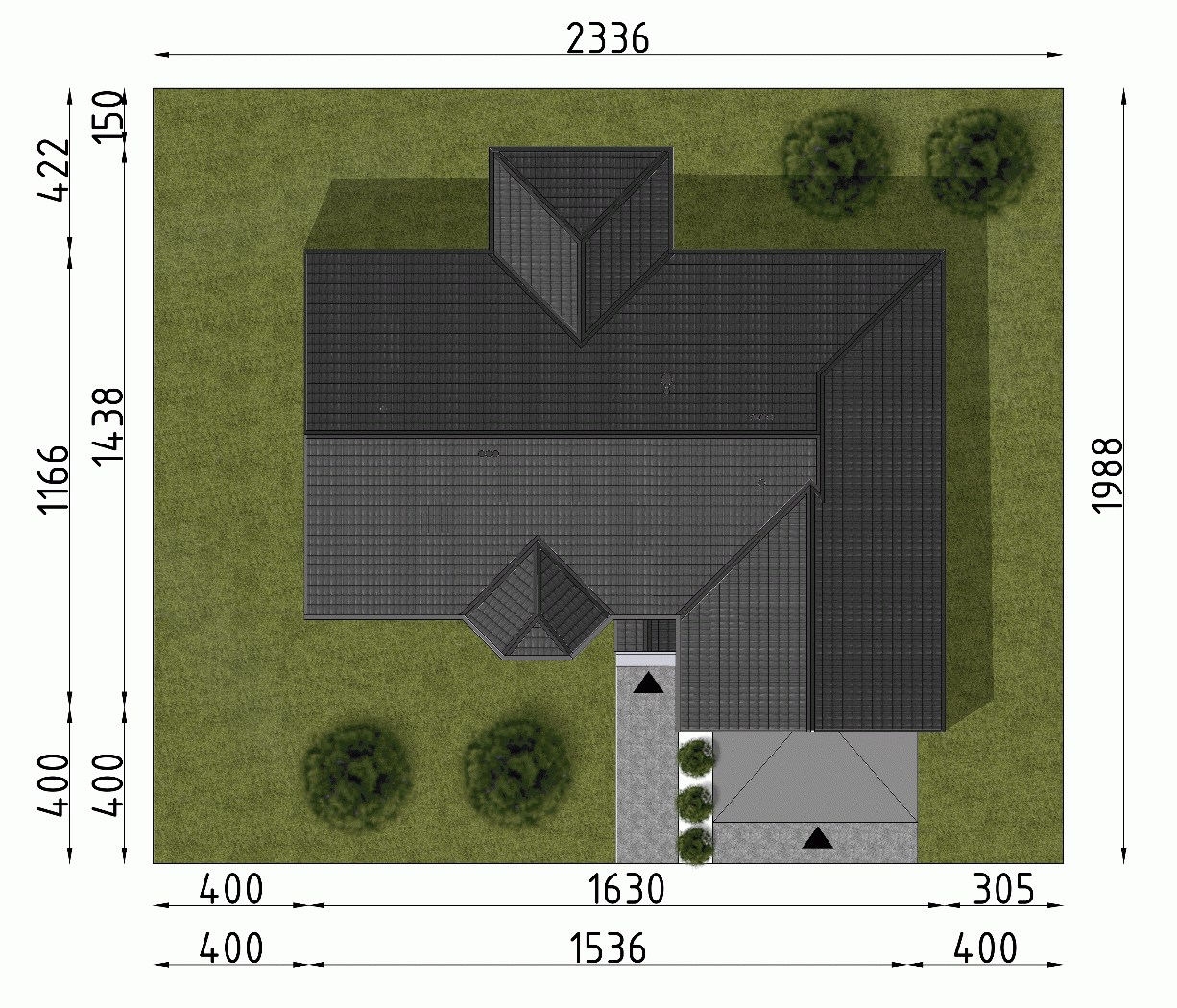 - Minimalne wymiary działki19.88 x 23.36m
