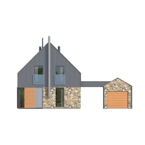 - elewacje (frontowa, dwie elewacje boczne, ogrodowa) – dokładny wygląd domu z każdej strony.