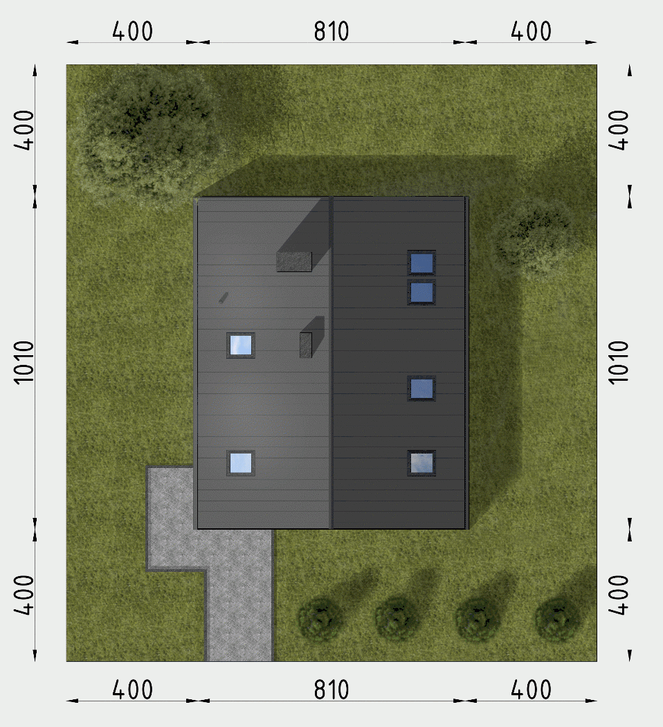- elewacje (frontowa, dwie elewacje boczne, ogrodowa) – dokładny wygląd domu z każdej strony.