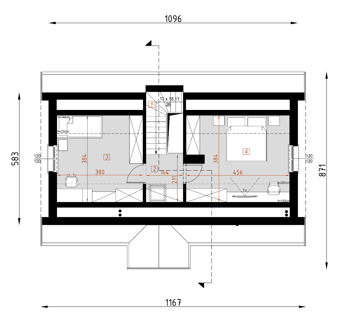 - rzut więźby dachowej – wymiary i rozmieszczenie elementów konstrukcji dachu.