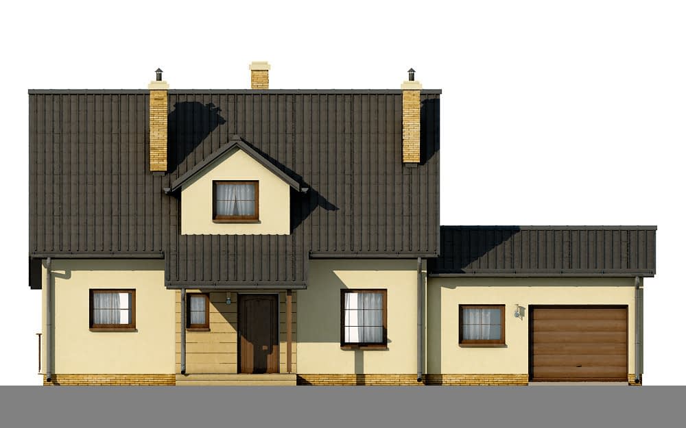 - elewacje (frontowa, dwie elewacje boczne, ogrodowa) – dokładny wygląd domu z każdej strony.