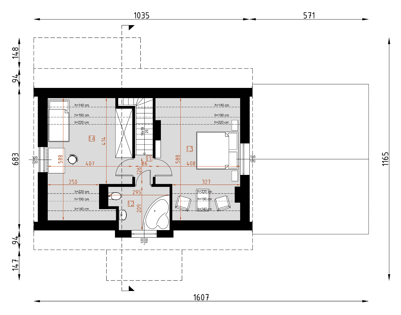 - rzut więźby dachowej – wymiary i rozmieszczenie elementów konstrukcji dachu.