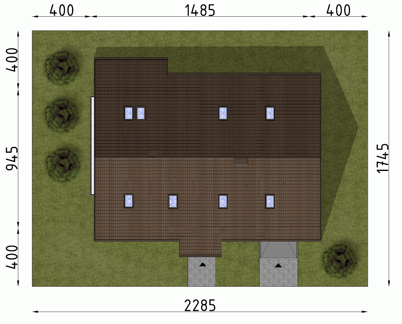 - rzut dachu – wymiary dachu, kąt nachylenia wszystkich połaci dachu, rozmieszczenie okien połaciowych, lukarn, kominów.