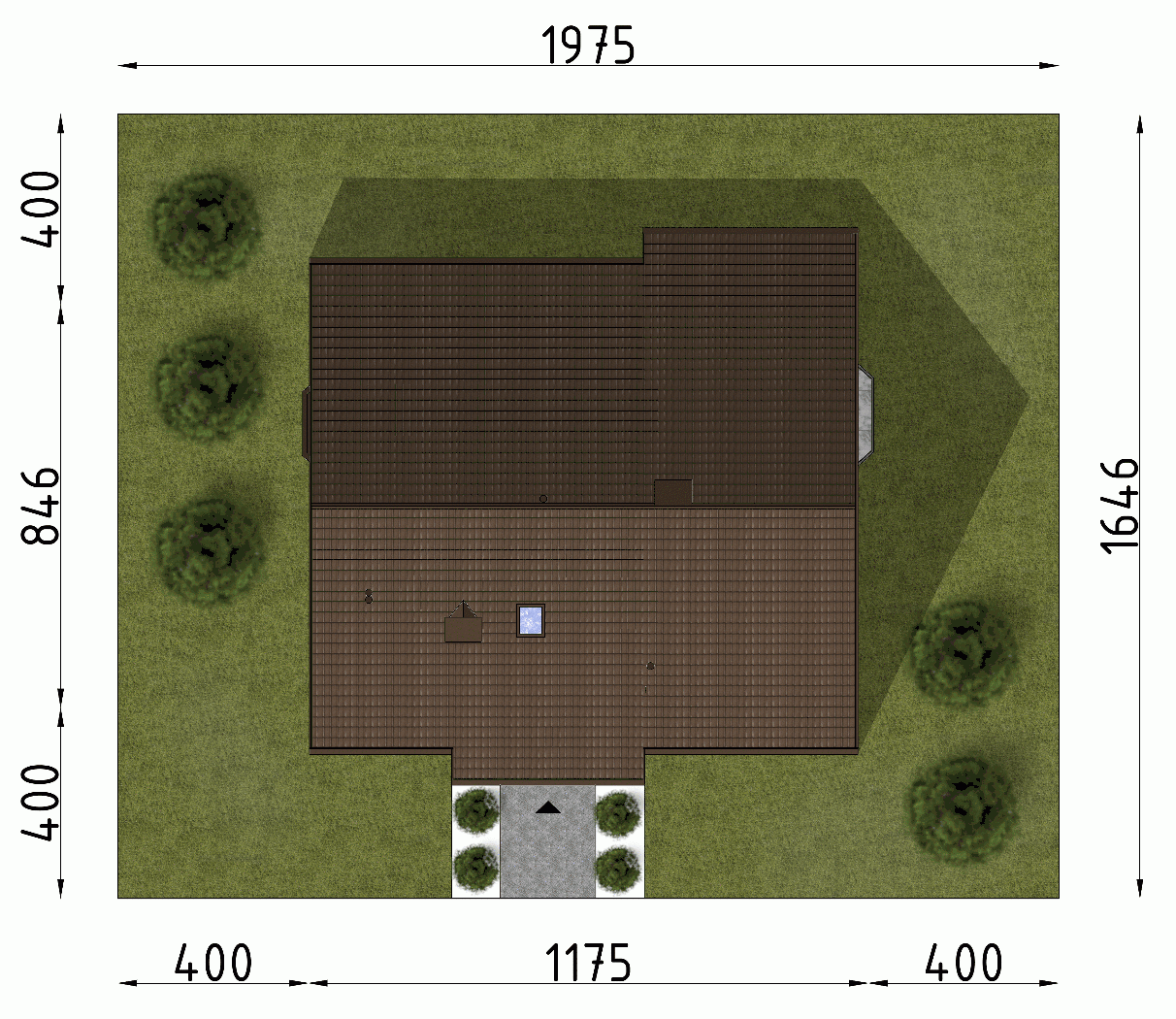 - elewacje (frontowa, dwie elewacje boczne, ogrodowa) – dokładny wygląd domu z każdej strony.