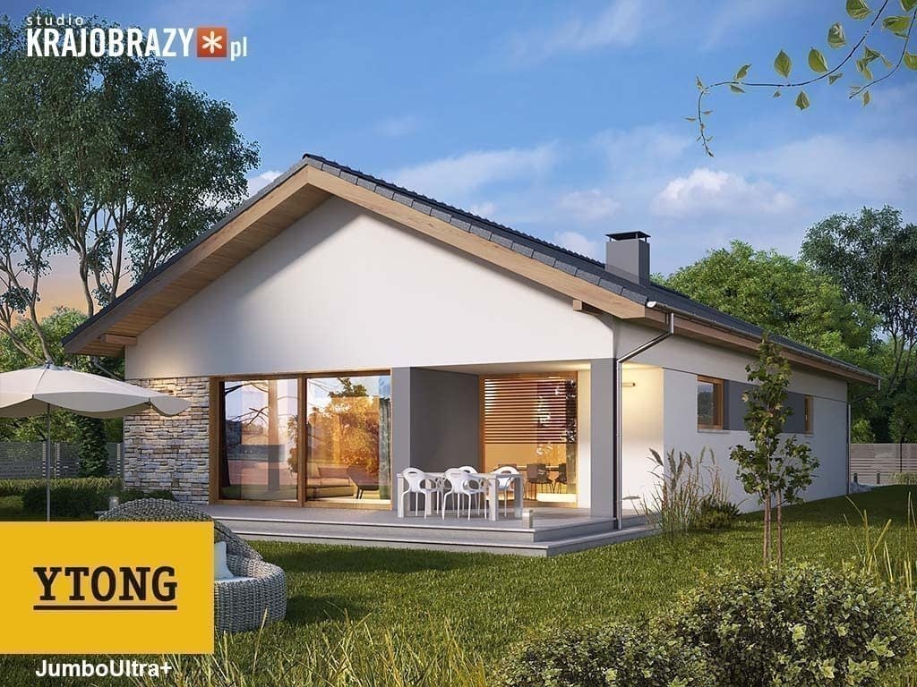 Da Vinci w wersji Ytong to średniej wielkości dom parterowy z garażem jednostanowiskowym wbudowanym w niezwykle prostą bryłę z dwuspadowym dachem. Dzięki wydłużonemu ku tyłowi prawie prostokątnemu planowi, będzie można ten dom wpasować też na wąską działkę o szerokości poniżej 19m. Wnętrze domu rozplanowane jest wokół centralnego korytarza, prowadzącego ku otwartemu pokojowi dziennemu, który połączony jest z nowocześnie zaprojektowaną kuchnią z wyspą. Rząd trzech sypialni przedziela blok z łazienkami, z których mniejsza dostępna jest wyłącznie z pokoju rodziców, tak jak i garderoba. Dokumentację zamówić można w wersji standard lub lustro.Rzuty