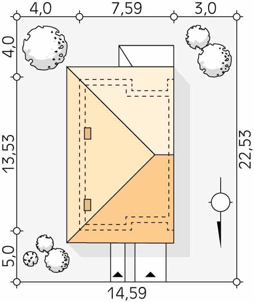 Ściany: 2-warstwowe - pustak ceramiczny + styropian, Stropy: żelbetowe, wylewane, Dach: dachówka ceramiczna,Rzuty