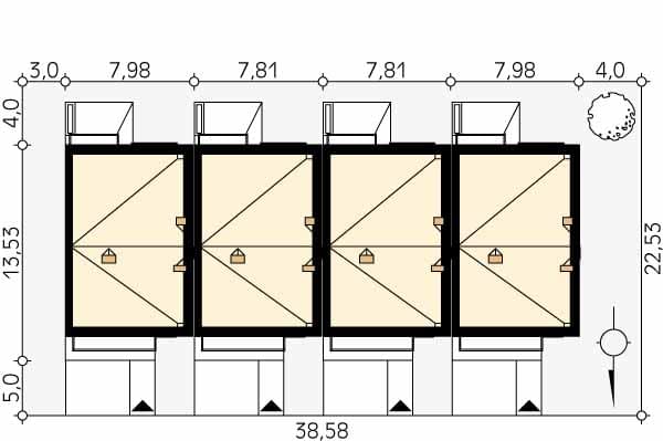 - Minimalne wymiary działki22.53 x 38.58m