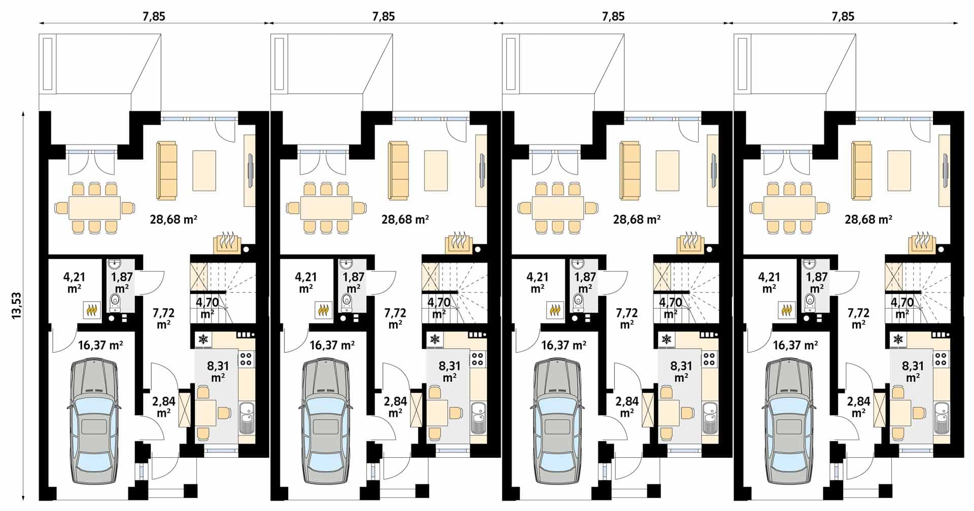 - Długość domu13.53 m