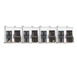 Dąb to projekt domu w zabudowie szeregowej. Nowoczesna bryła nawiązuje do cenionej estetyki willi modernistycznej. Funkcjonalne rozmieszczenie pomieszczeń zapewnia komfortowe warunki życia dla 4-osobowej rodziny. Osłonięty, zadaszony taras i duże przeszklenia to dodatkowe walory projektu. Cena dotyczy jednego segmentu. O inne konfiguracje zapytaj telefonicznie.Konstrukcja