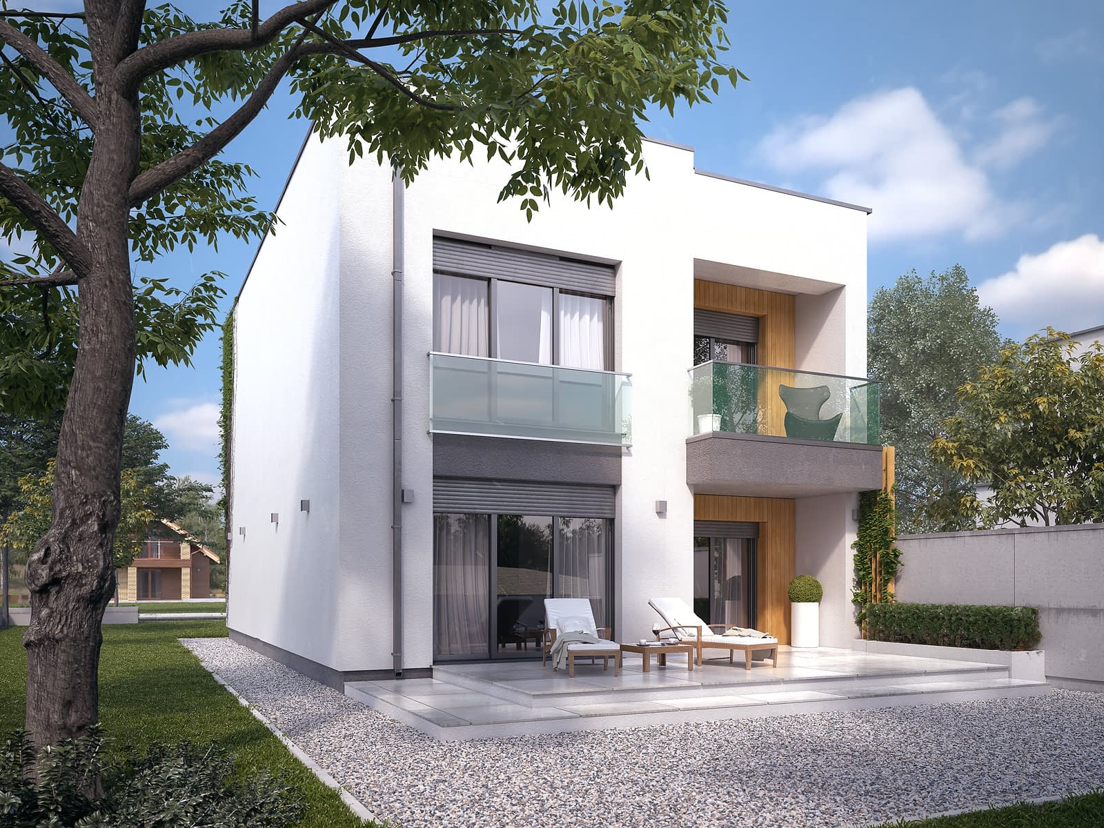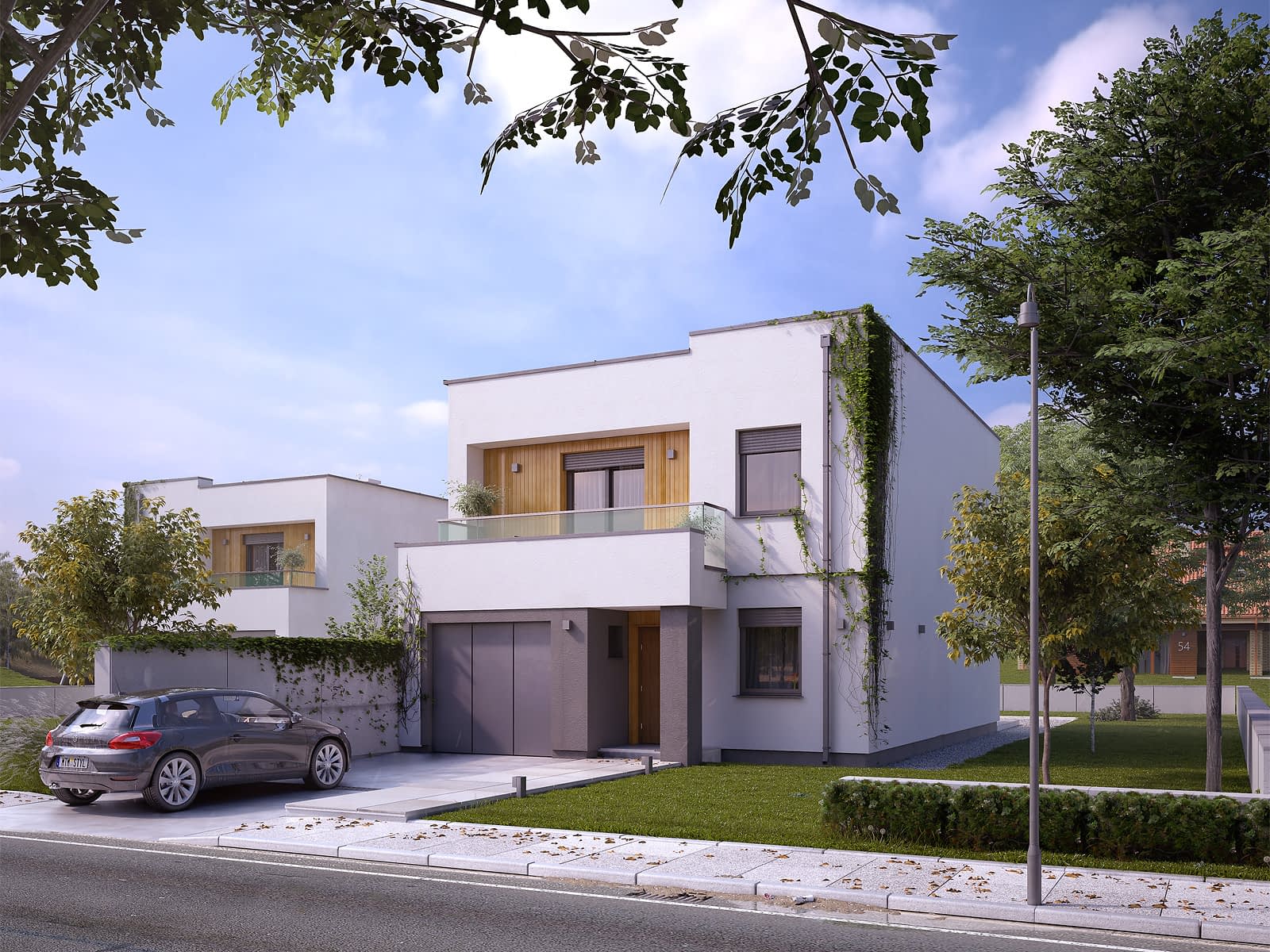 Dąb W to projekt domu jednorodzinnego o zwartej bryle przeznaczy na wąską działkę. Program funkcjonalny domu został wyraźnie podzielony na strefę dzienną, nocną oraz gospodarczą. Na parterze znajduje się strefa dzienna z salonem, jadalnią oraz kuchnią. Dodatkowo na parterze zaprojektowano jednostanowiskowy garaż z przejściem do kotłowni. Na piętrze zaprojektowano trzy wygodne sypialnie oraz rodzinną łazienkę. Układ pomieszczeń domu pozwala na realizację projektu zarówno w formie zabudowy szeregowej i bliźniaczej. Możliwa jest realizacja projektu na działkach o szerokości nie przekraczającej 16 metrów.Konstrukcja