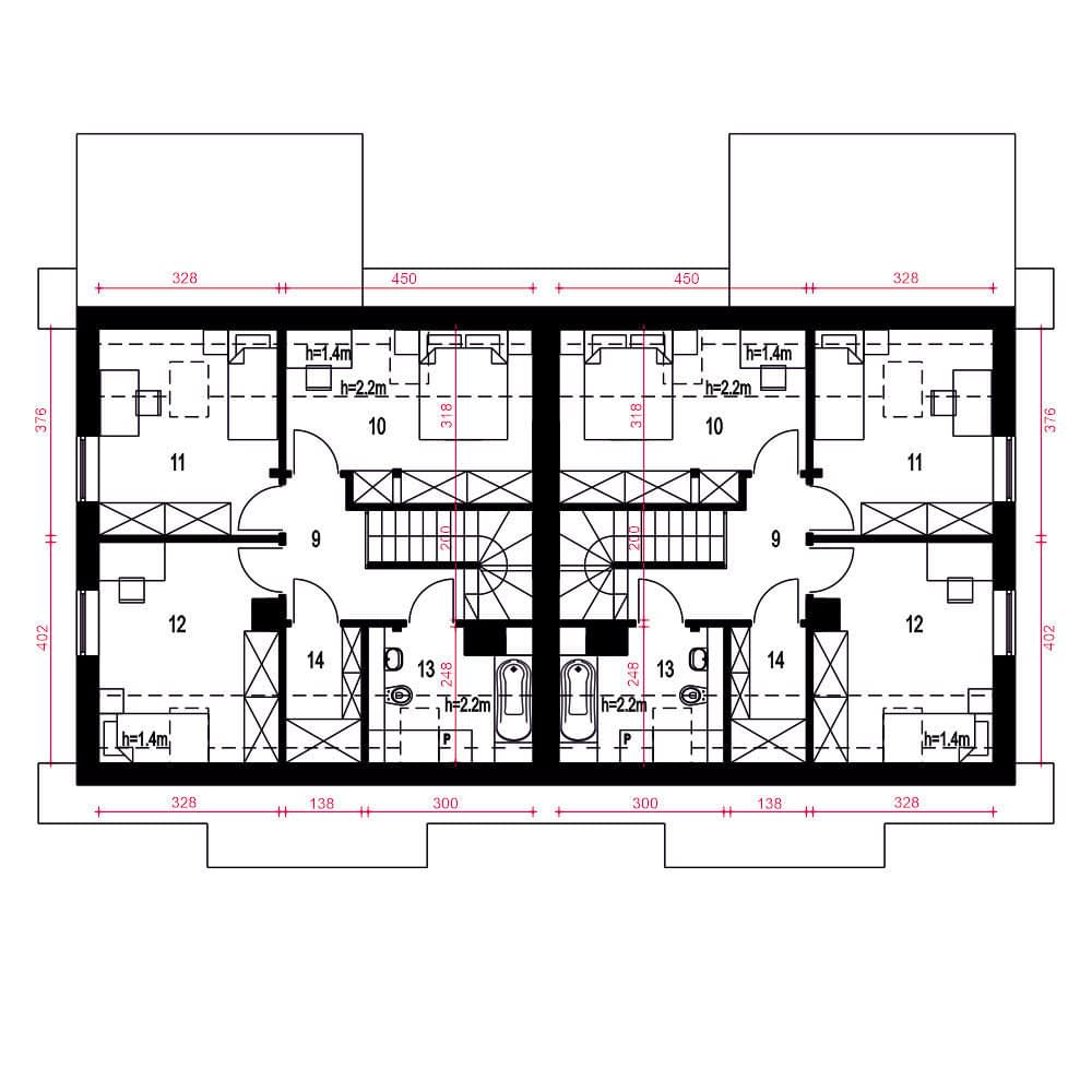(Uwaga: projekty typu bliźniak oferujemy jako domy dwulokalowe, projekt można zamówić również w zabudowie bliźniaczej)Ekonomiczny, projekt niewielkiego domu jednorodzinnego z dwuspadowym dachem. Daktyl przewidziany jest dla czteroosobowej rodziny. Główne, zadaszone wejście prowadzi do wiatrołapu. Stąd można dostać się do pomieszczenia technicznego oraz do mieszkalnej części dziennej. Pod częścią biegu schodowego zaprojektowano łazienkę. Z salonem połączony jest pokój gościnny. Kuchnia jest otwarta i posiada spiżarnię. W centralnej części domu zaprojektowano kominek. Obok kuchni przewidziano miejsce na stół. Z salonu wchodzi się schodami na poddasze, gdzie zlokalizowano trzy sypialnie oraz łazienkę z pralką.Daktyl to propozycja ekonomicznego i ekologicznego domu, który doskonale sprawdzi się jako dom całoroczny.