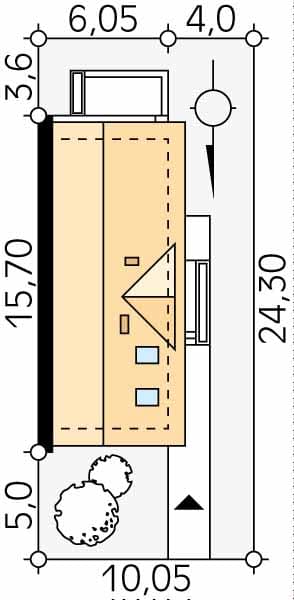 - Minimalne wymiary działki24.3 x 10.05m
