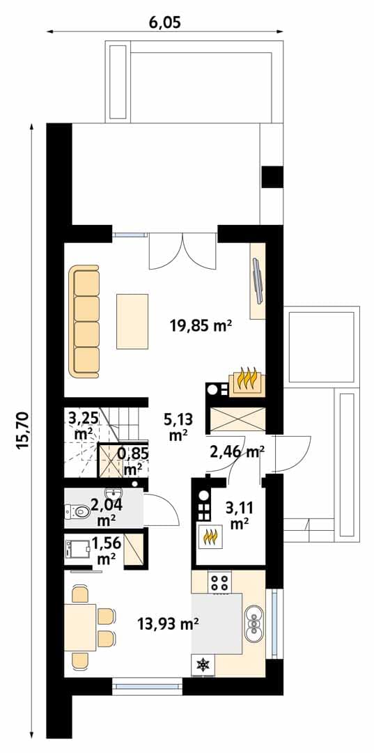 - Szerokość domu6.05 m