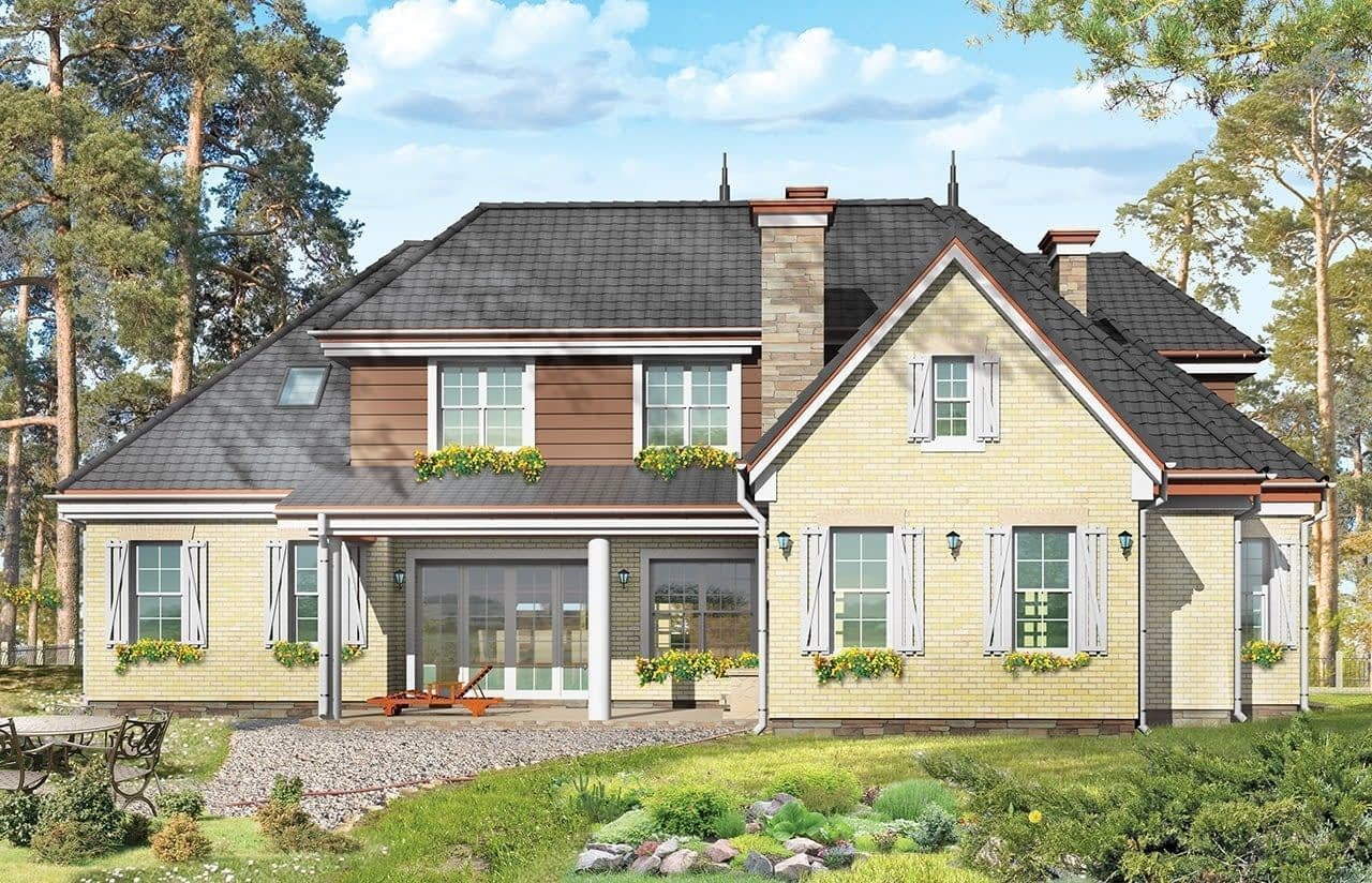 Projekt domu Dallas to duża rezydencja w zwartej bryle o dwóch kondygnacjach. Wnętrze budynku jest bardzo obszerne a poszczególne pokoje mają duże powierzchnie. Pomieszczenia salonu holu jadalni i pokoju kominkowego łączą się na parterze w jednoprzestrzenne wnętrze. Wewnętrzny hol dworku Dallas z zabiegowymi schodami i z antresolą na piętrze stanowi bardzo reprezentacyjny element. Budynek zawiera w sobie wszelkie pomieszczenia wymagane od reprezentacyjnej willi. Połączenia komunikacyjne między poszczególnymi pomieszczeniami zostały dobrze przemyślane: w strefie wejściowej została zaprojektowana obszerna garderoba/szatnia. Przejście z garażu to połączenie z kuchnią z wygodnym dostępem do spiżarni. Dostęp do pomieszczenia rekreacyjnego na piętrze w strefie wypoczynkowej zapewniono przez osobne schody z holu na parterze. Dom Dallas mimo swego rozmiaru składa się z jednej zwartej bryły z ukrytym tarasem. Jego budowa wbrew pozorom nie powinna być skomplikowana. W budynku zastosowano dobre materiały izolacyjne i technologie energooszczędne. Lokalizacja tarasu zapewnia mieszkańcom intymność i komfort wypoczywania. Projekt domu Dallas dostępny jest też w wersji odbicia lustrzanego.