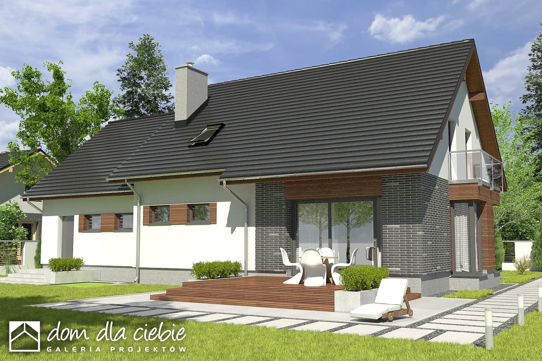 Projekt Daria to dom jednorodzinny wolnostojący z wbudowanym garażem, przeznaczony dla 4 osobowej rodziny.
