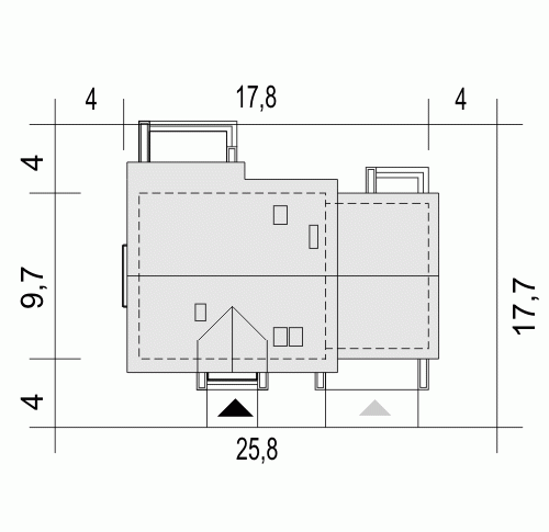 - Minimalne wymiary działki17.7 x 25.8m