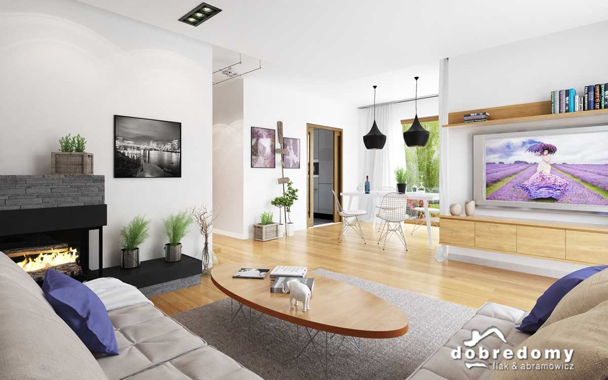 Elewacje pokryte tynkiem strukturalnym w systemie ociepleń Termo Organika. W projekcie zastosowano okna dachowe marki FAKRO. Pokrycie dachu - dachówka ceramiczna lub cementowa CREATON.