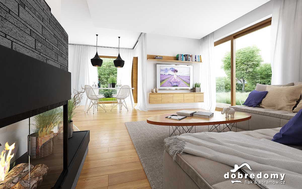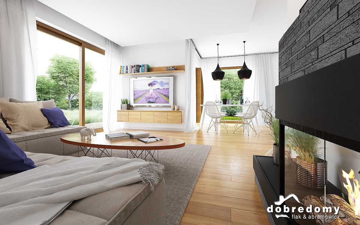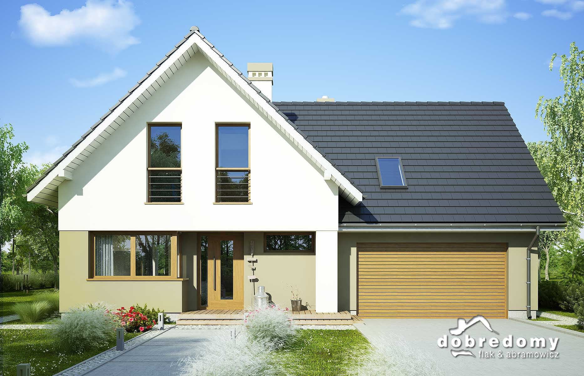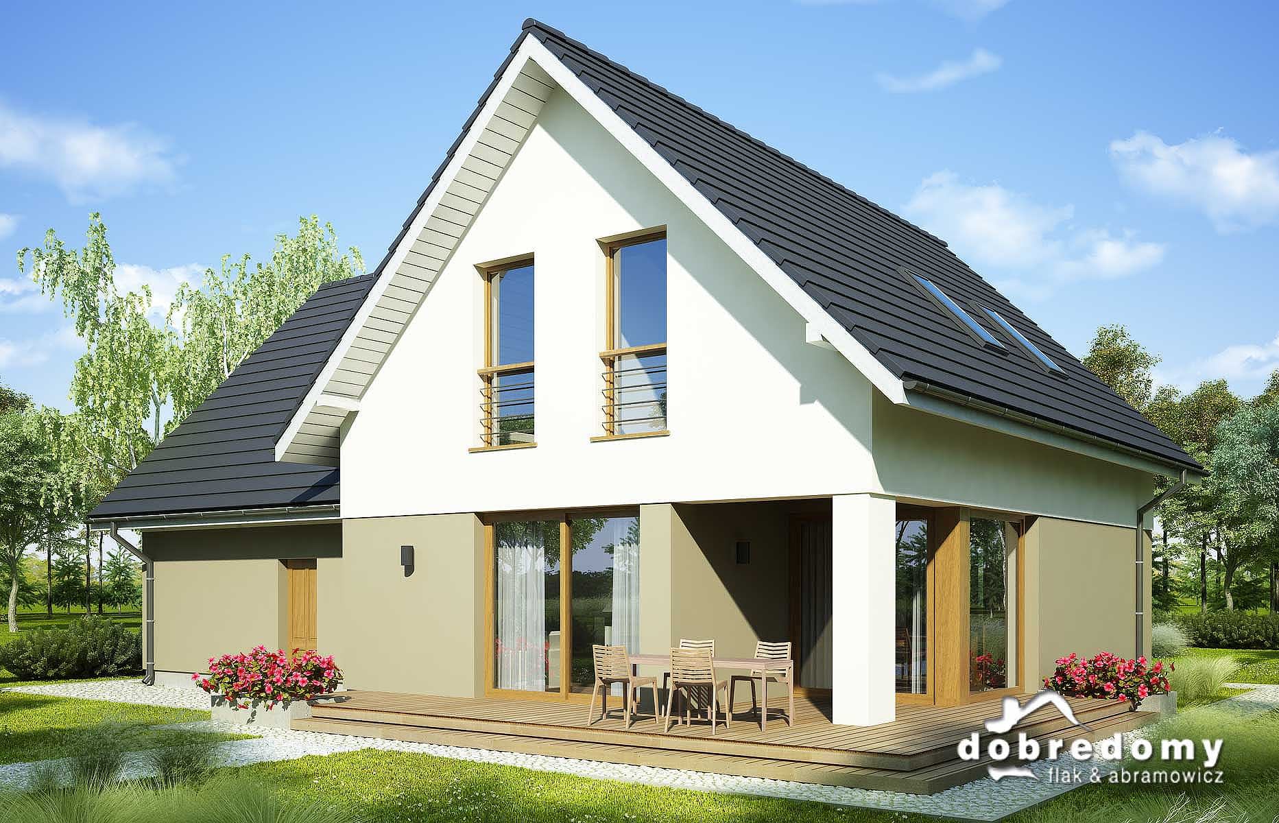 Elewacje pokryte tynkiem strukturalnym w systemie ociepleń Termo Organika. W projekcie zastosowano okna dachowe marki FAKRO. Pokrycie dachu - dachówka ceramiczna lub cementowa CREATON.