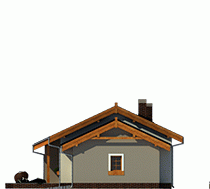 Przytulny dom dla 4-osobowej rodziny. Prosty konstrukcyjnie i tani w realizacji. Przeznaczony na działki z wjazdem od południa. Funkcjonalnie podzielony na część dzienną i nocną. W części dziennej przewidziano salon z kominkiem, z dwoma dogodnymi wyjściami na obszerny taras. Salon połączony jest z kuchnią ze spiżarnią. Przewidziano tu również dodatkową łazienkę dla gości. W części nocnej znajdują się 3 sypialnie, łazienka oraz kotłownia z przejściem do garażu. W razie potrzeby kotłownia pomieści piec na paliwo stałe.
