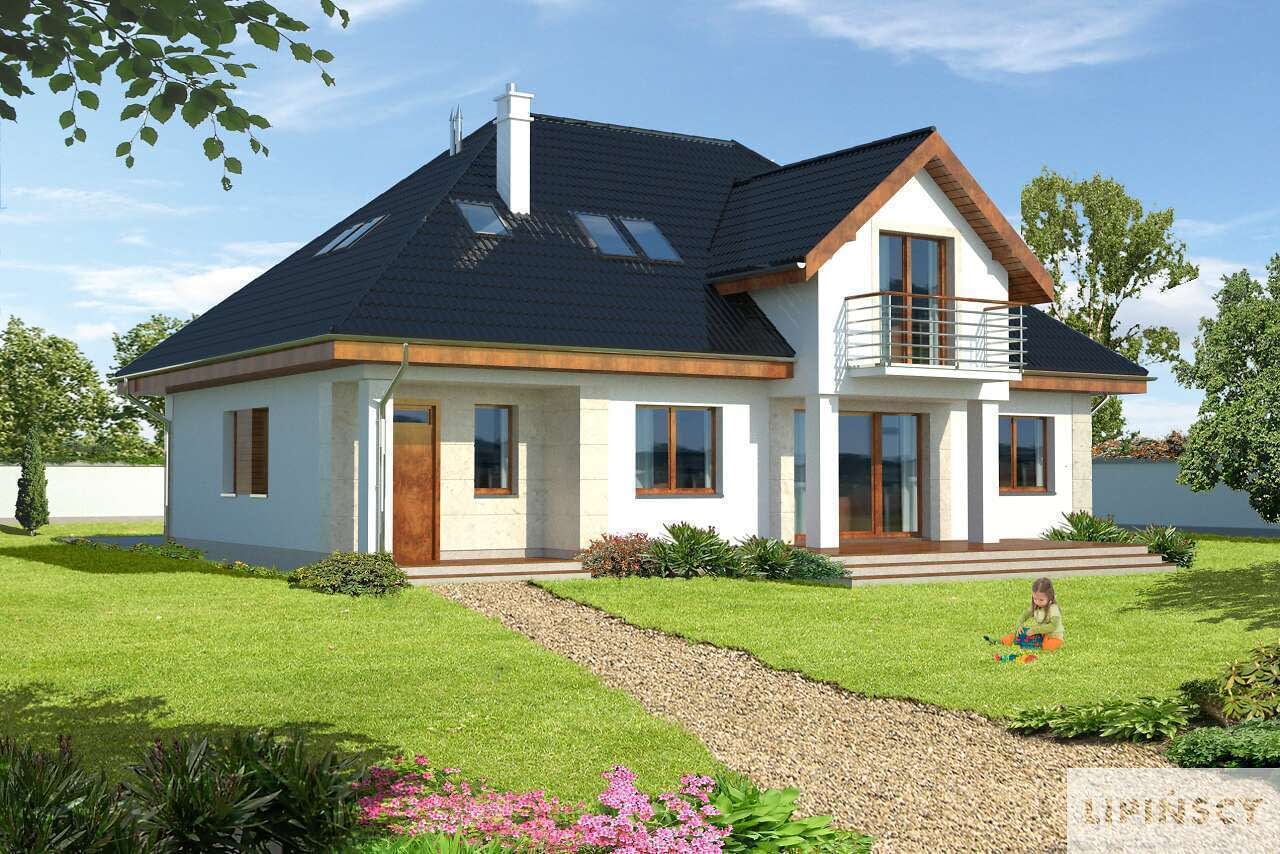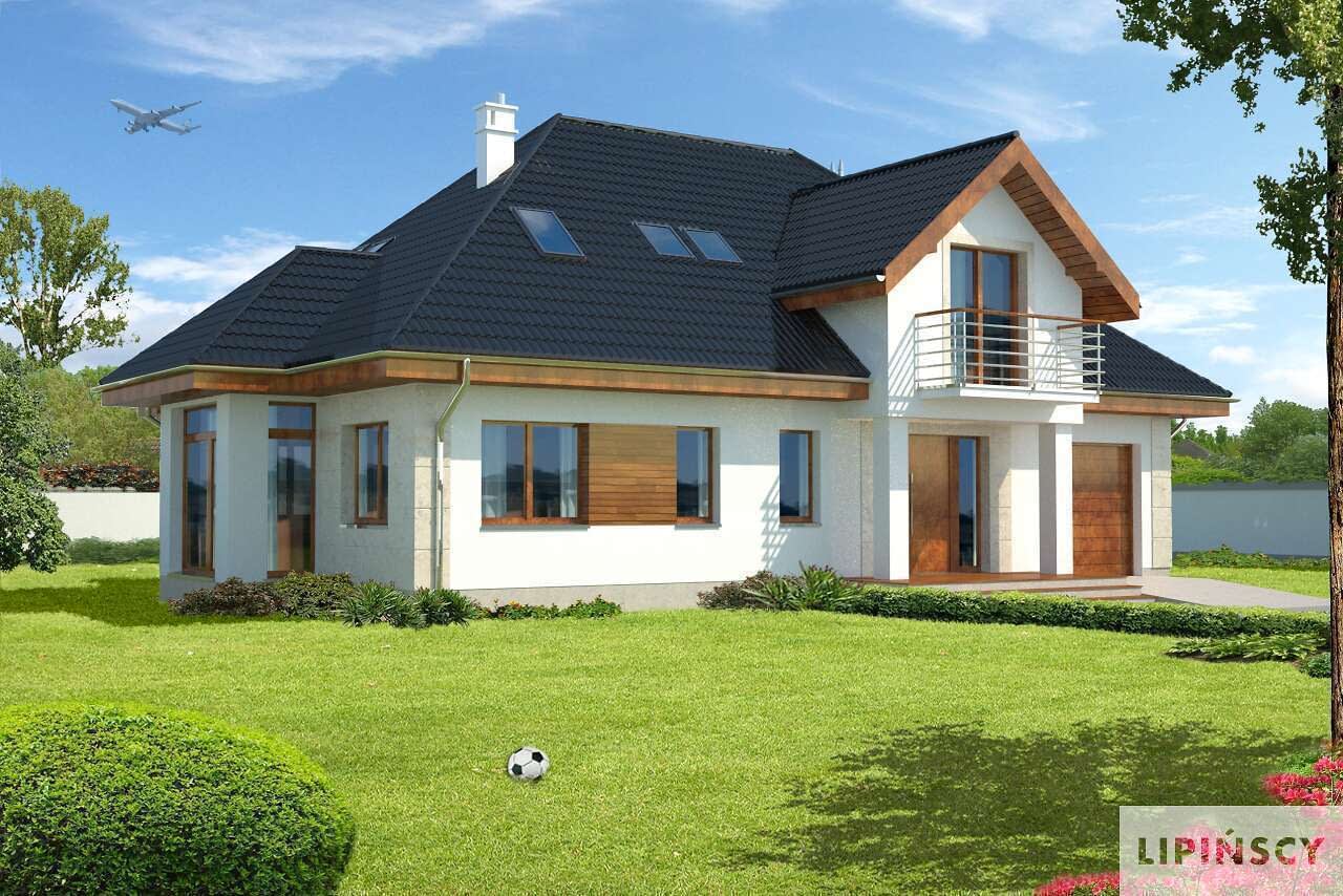 Funkcjonalny dom energooszczędny z użytkowym poddaszem, doskonały dla licznej rodziny. Ciekawa, elegancka bryła z pewnością zwraca uwagę, a funkcjonalne wnętrze gwarantuje wygodę mieszkańcom, którzy na parterze mają do dyspozycji przestronny salon z kominkiem, jadalnię, wygodną kuchnię, spiżarnię, dodatkowy pokój, pomieszczenie gospodarcze i łazienkę. Na poddaszu przewidziano cztery sypialnie, dwie garderoby, dwie łazienki i pralnię. Częściowo zadaszony taras to idealne miejsce do wypoczynku. Przewidziano także garaż, a za nim kotłownię.