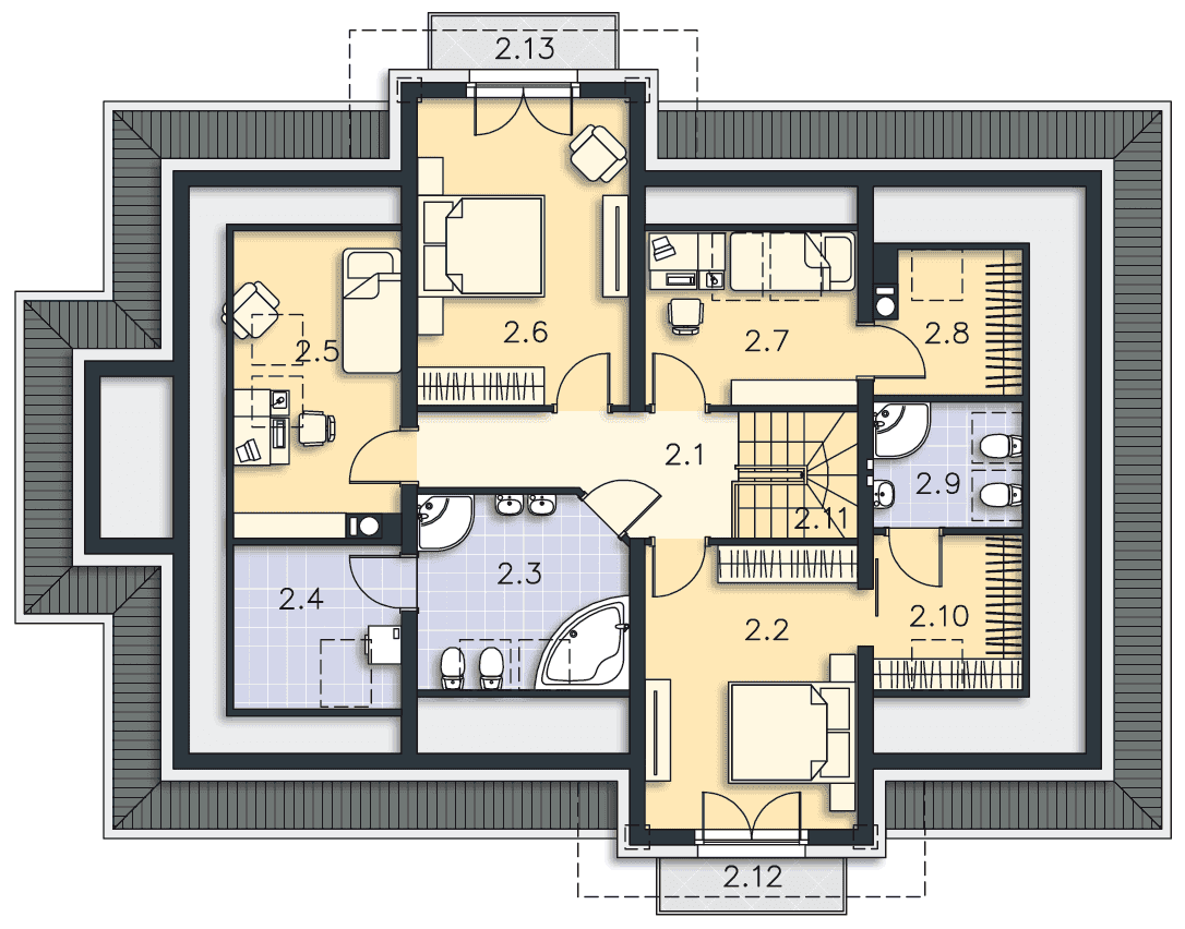 - Rodzaj dachuWielospadowy