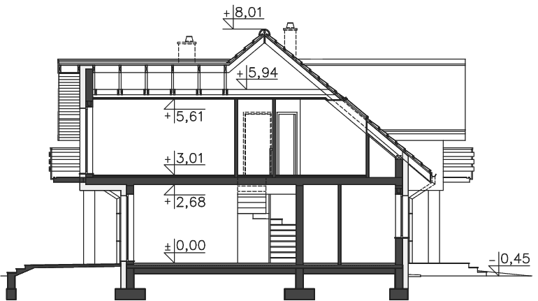 - Elewacje - frontowa, ogrodowa, boczne
