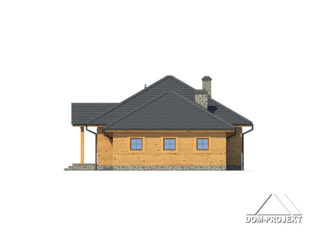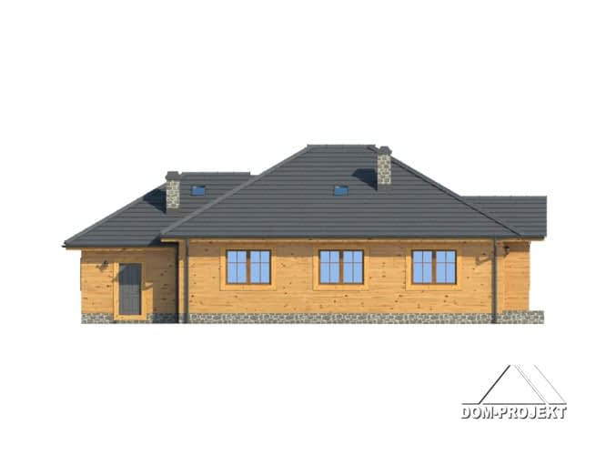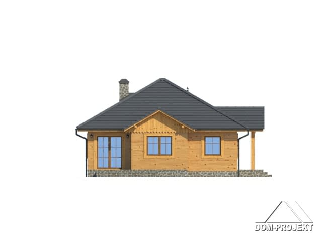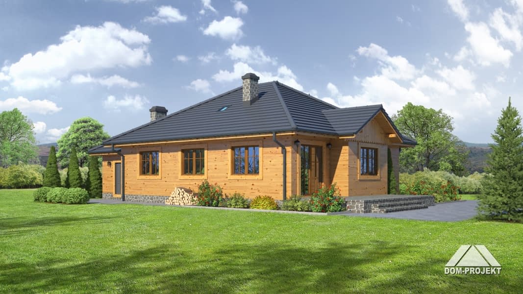 Dom w konstrukcji szkieletu drewnianego. Parterowy. Duży salon z kominkiem i wyjściem na taras., duża kuchnia, trzy pokoje, łazienka, wiatrołap i garderoba. Garaż, kotłownia. Poddasze nieużytkowe.Rzuty