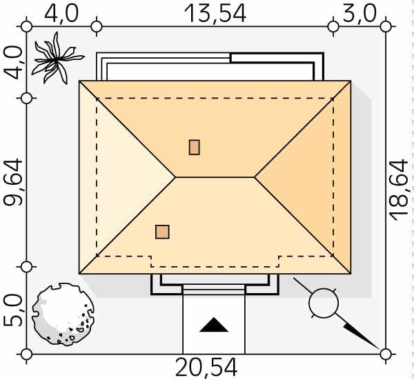 - Minimalne wymiary działki18.64 x 20.54m
