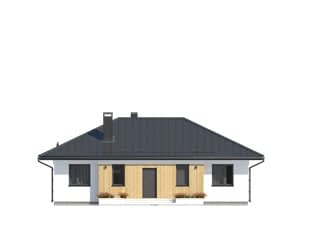 Decyma 10 to projekt niewielkiego domu jednorodzinnego przeznaczonego dla czteroosobowej rodziny. Dużą zaletą jest prosta i zwarta bryła, co wpływa na łatwą i stosunkowo niedrogą realizację projektu i jego późniejszą eksploatację. Układ funkcjonalny z pewnością spodoba się inwestorom ceniącym prostotę i funkcjonalność. W domu zaprojektowano 3 odpowiednio duże sypialnie, część dzienną z jadalnią i otwartą kuchnią, garderobę, spiżarnię oraz wiatrołap z dostępem do niewielkiej kotłowni. Na zewnątrz znajduje się duży taras, który w ciepłe, letnie dni będzie sprzyjał w organizowaniu rodzinnych spotkań.Konstrukcja