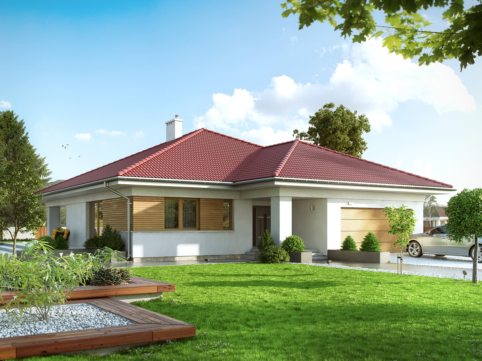 Decyma 5 to projekt nowoczesnego domu idealnego dla 4 - 5-osobowej rodziny. W bryle budynku zaprojektowano dwustanowiskowy garaż. W części dziennej dominuje otwarta przestrzeń salonu zaakcentowana dużą ilością przeszkleń oraz obszerny, reprezentacyjny hol. W części nocnej zaprojektowano cztery sypialnie, w tym jedną z garderobą, oraz łazienkę. Decyma 5 jest projektem energooszczędnym. Atutem jest duży dwustanowiskowy garaż oraz spiżarnia usytuowana przy kuchni.Konstrukcja