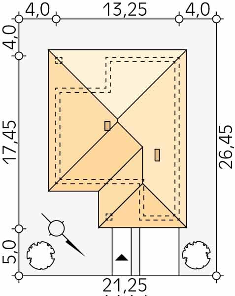 - Minimalne wymiary działki26.45 x 21.25m