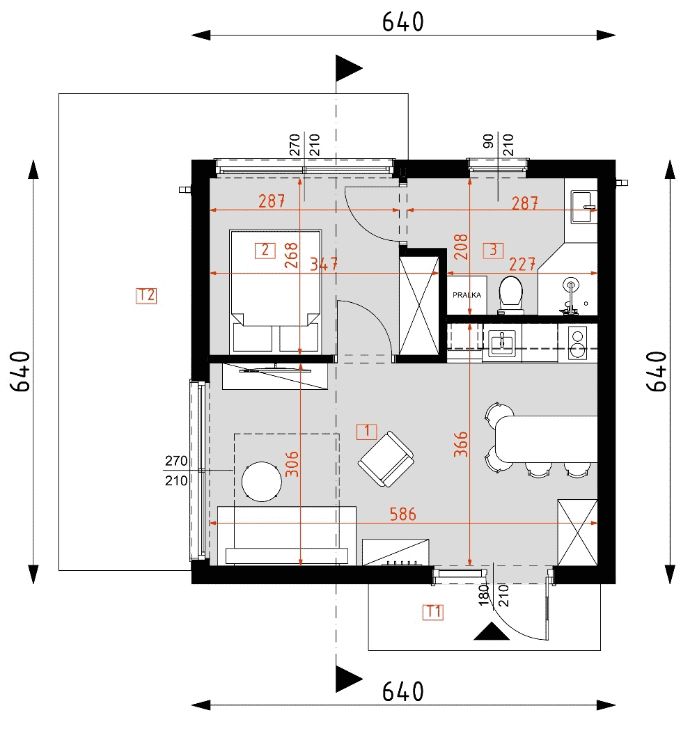 - Minimalne wymiary działki14.4 x 13.4m