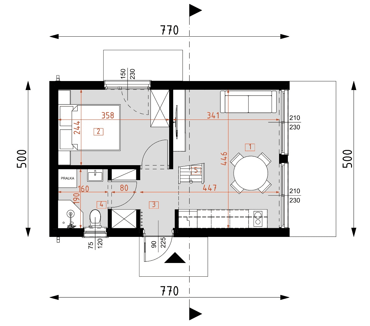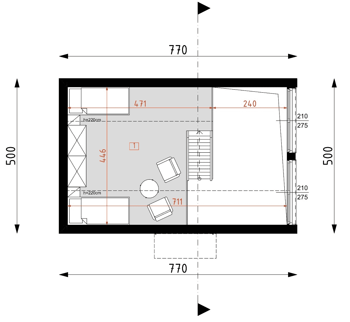 - rzuty wszystkich kondygnacji (np. parter, piwnica, piętro) – rozmieszczenie i wymiary wszystkich pomieszczeń, rozmieszczenie i wielkość otworów okiennych i drzwiowych, rozmieszczenie kominów, sugerowana aranżacja wnętrz.