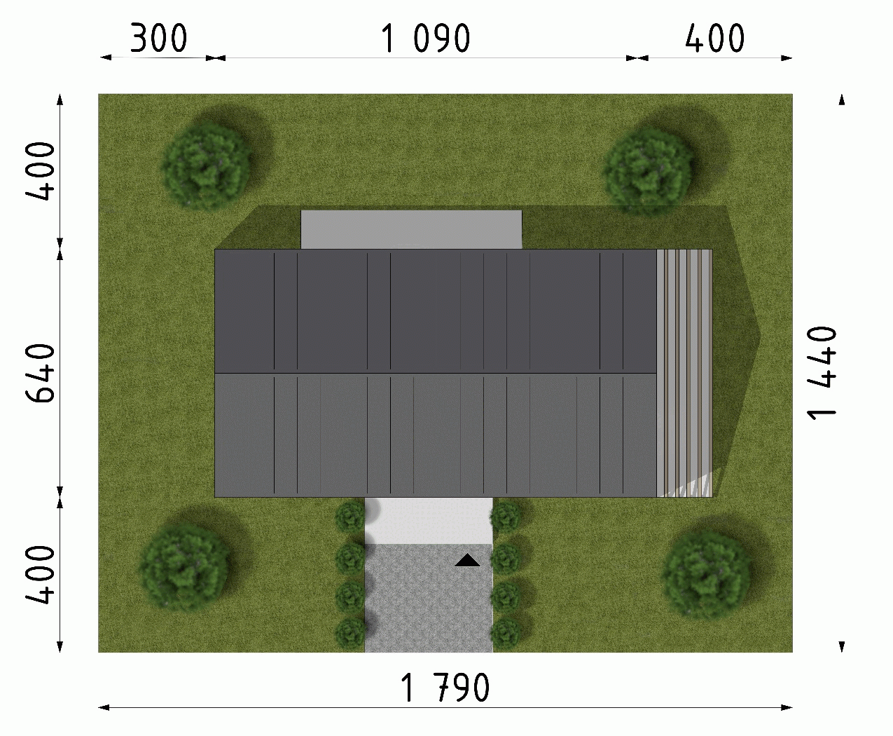 - Minimalne wymiary działki14.4 x 17.9m