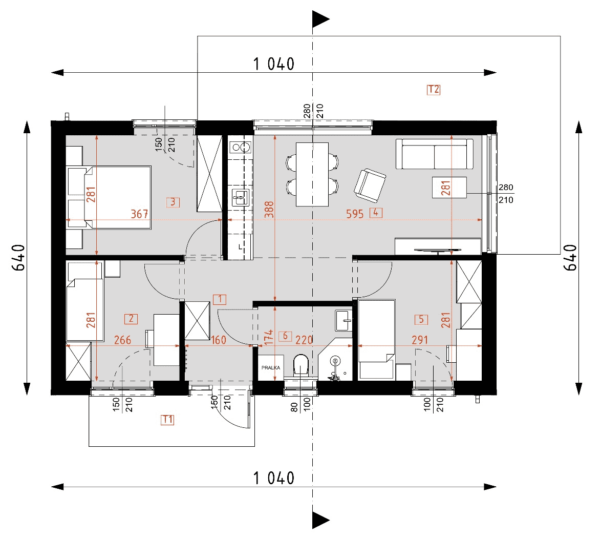 - rzuty wszystkich kondygnacji (np. parter, piwnica, piętro) – rozmieszczenie i wymiary wszystkich pomieszczeń, rozmieszczenie i wielkość otworów okiennych i drzwiowych, rozmieszczenie kominów, sugerowana aranżacja wnętrz.