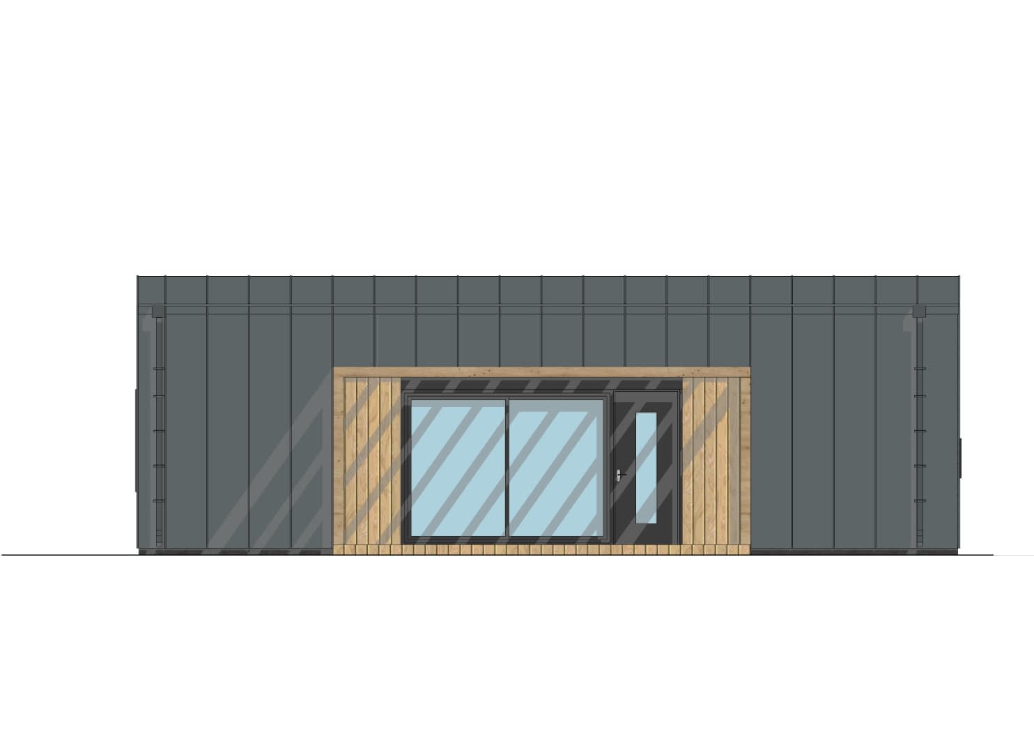 Elewacja: deskowanie, blacha trapezowa