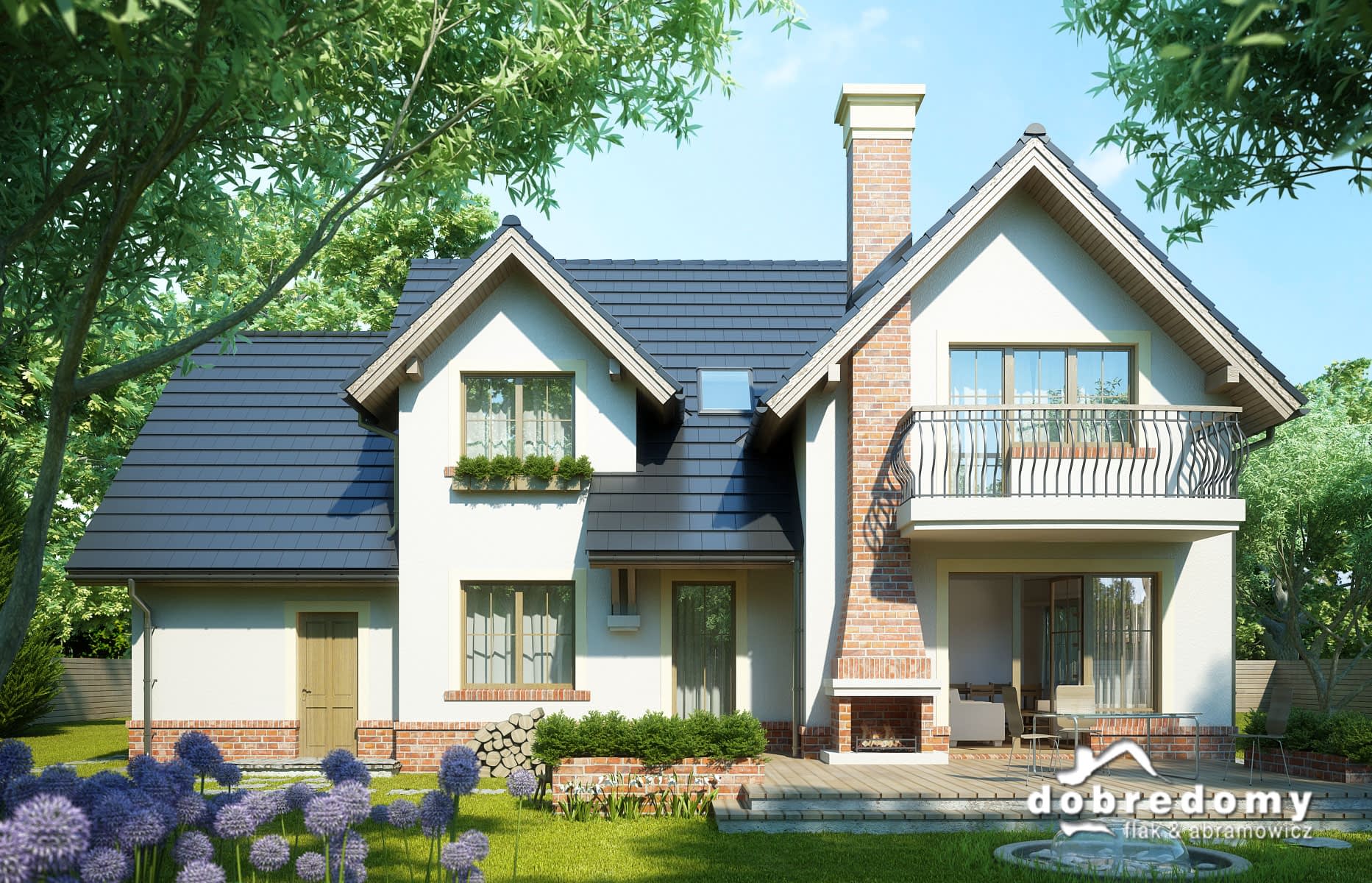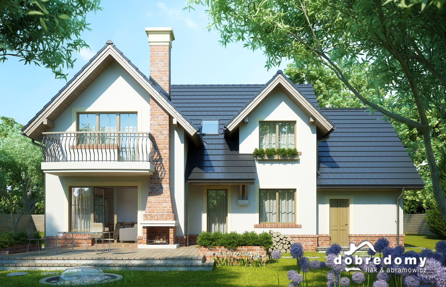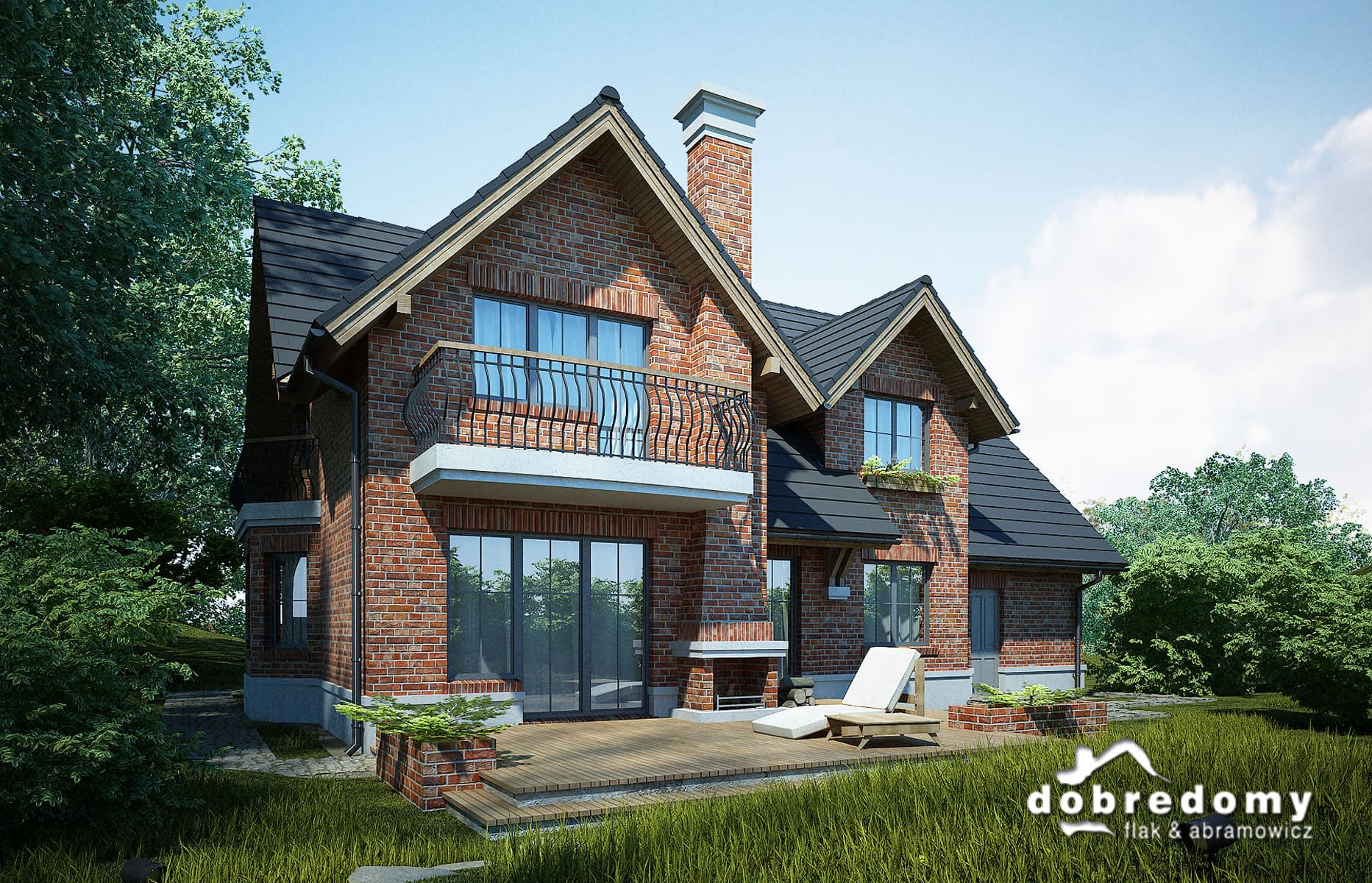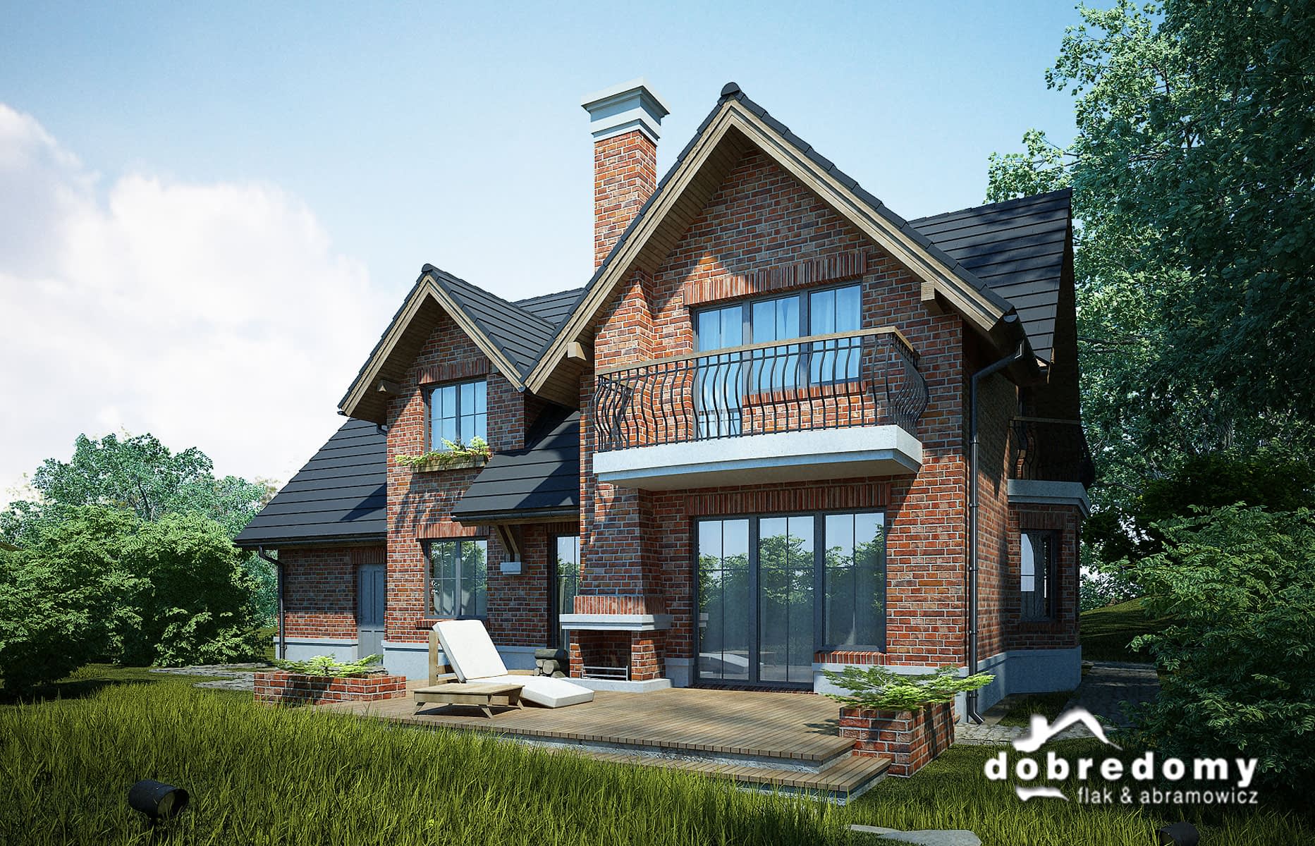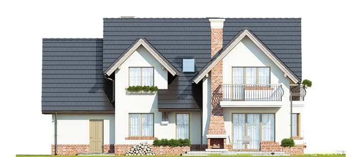 Elewacje pokryte okładziną klinkierową oraz tynkiem strukturalnym w systemie ociepleń Termo Organika. W projekcie zastosowano okna dachowe marki FAKRO. Pokrycie dachu - dachówka ceramiczna lub cementowa CREATON.