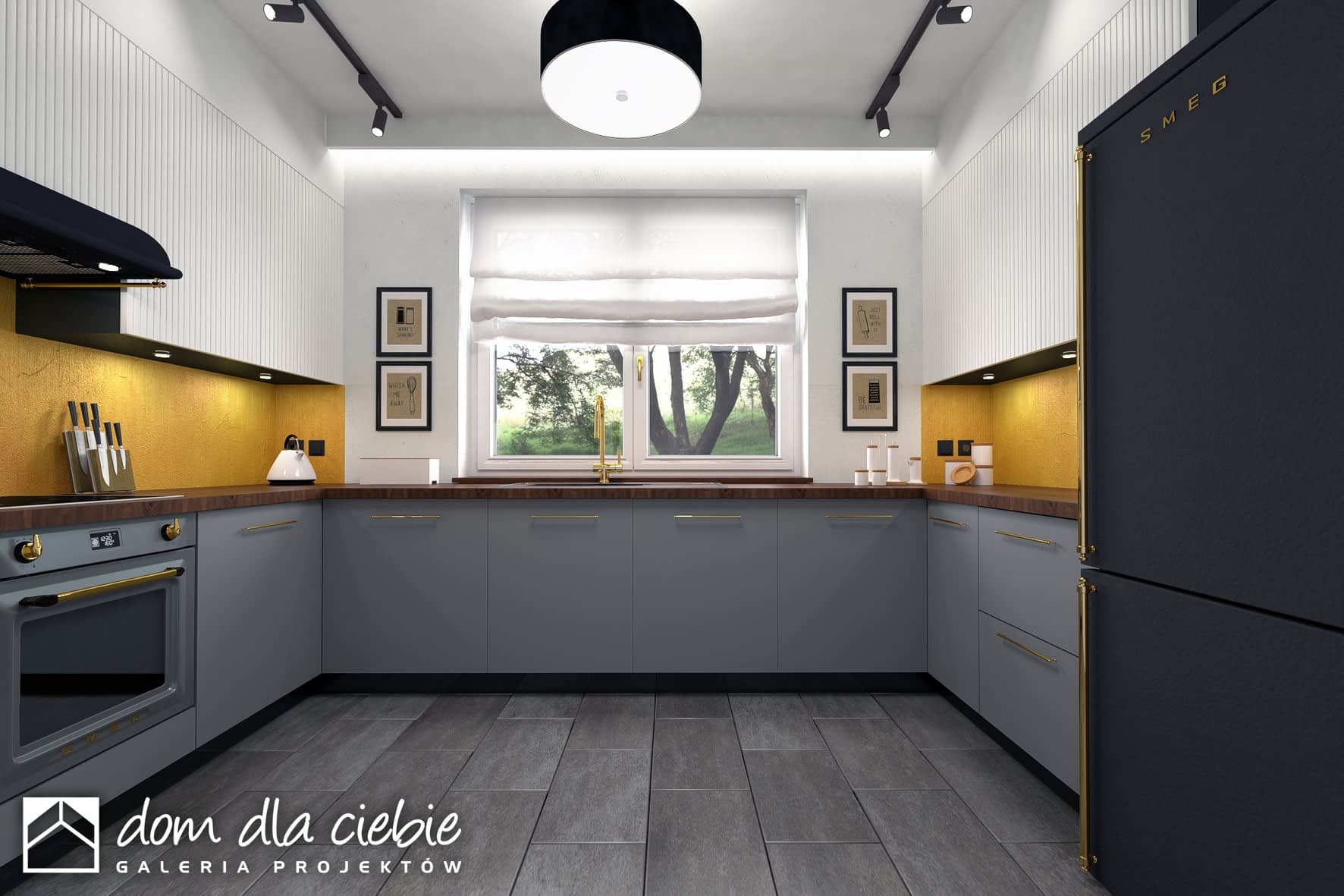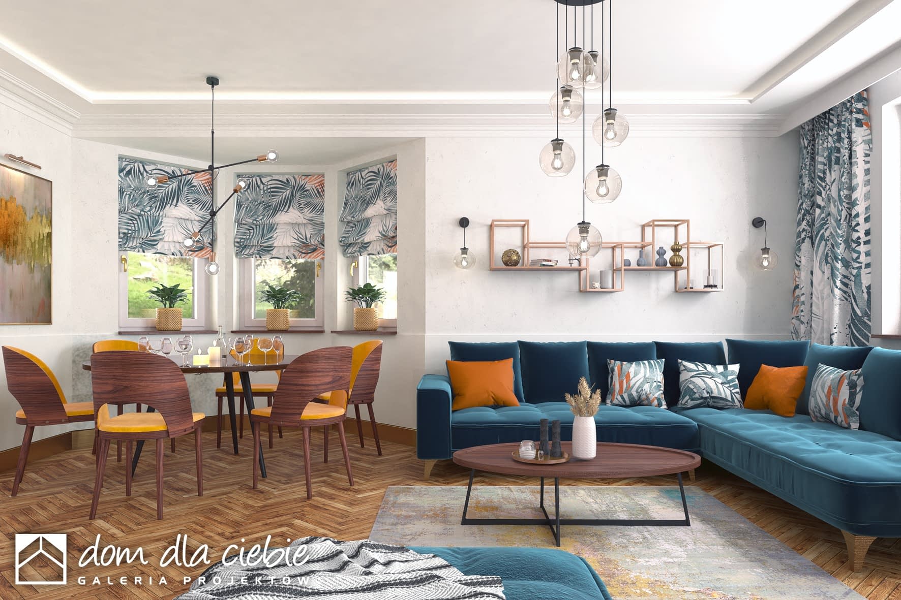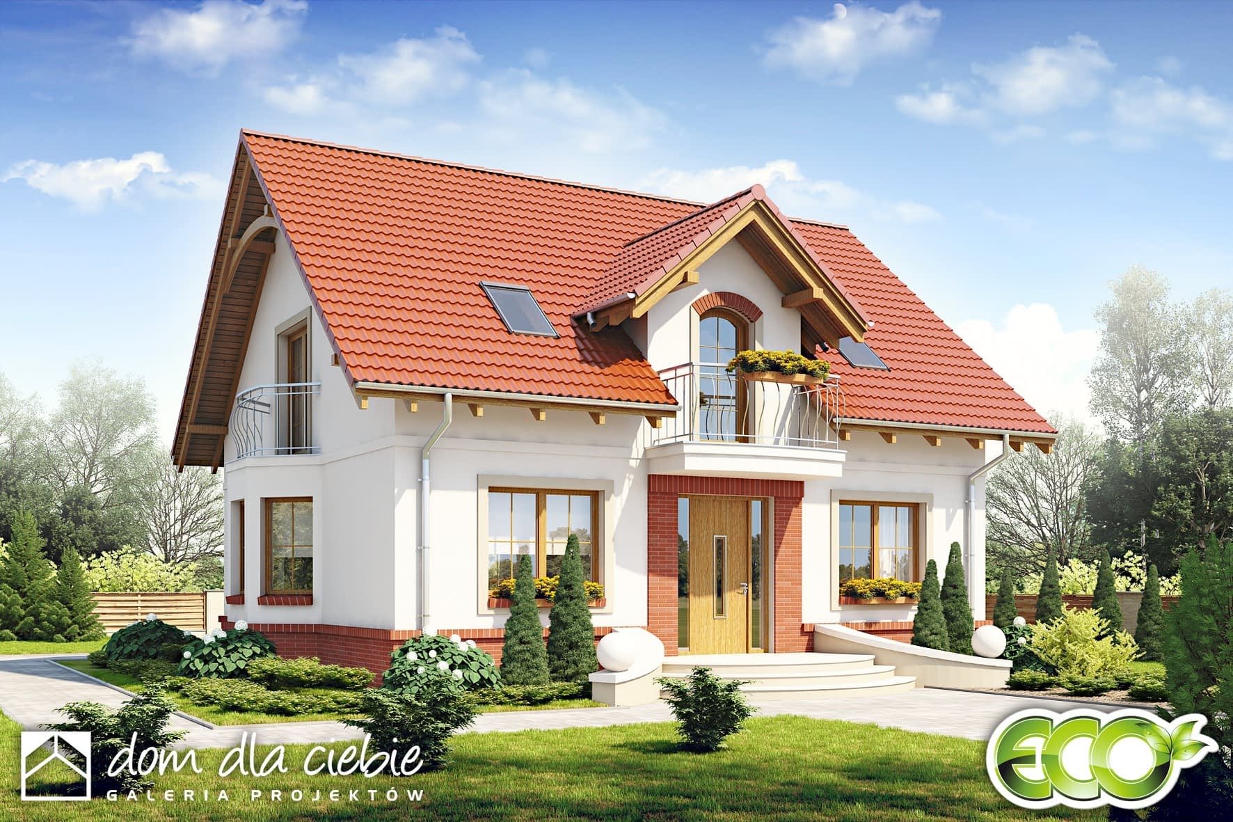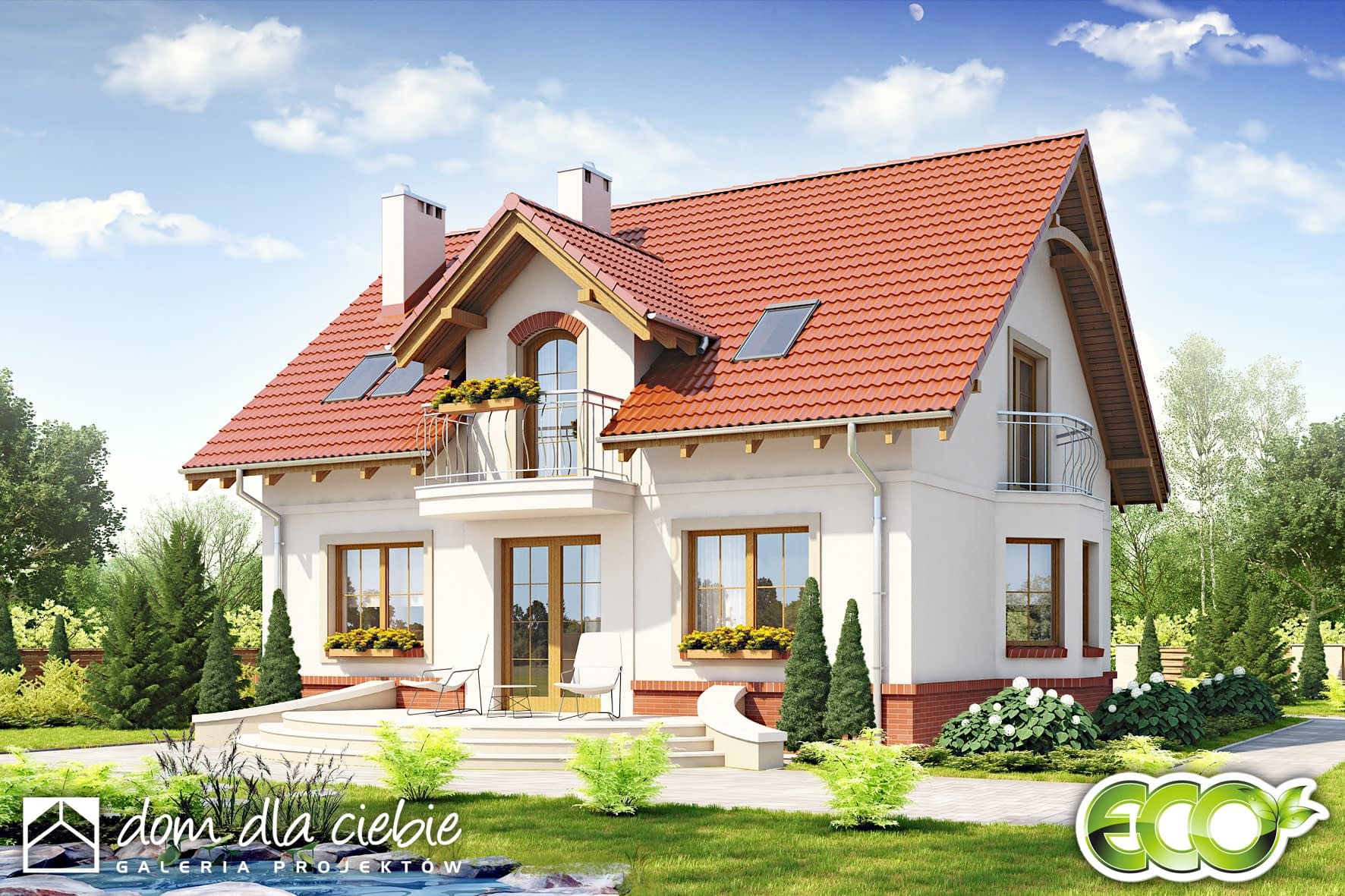 Dom Dla Ciebie 1 w2 bez garażu przeznaczony jest dla 4ro osobowej rodziny, zaprojektowany jest z zachowaniem podziału na dwie strefy: dzienną na parterze i nocną na poddaszu. Na parterze mamy zaprojektowany wiatrołap, hol, z którego dostaniemy się do kuchni i dalej do pomieszczenia pomocniczego z piecem CO, salonu z jadalnią i kominkiem oraz pokoju usytuowanego od frontu, który może być wykorzystywany jako gabinet. Przy schodach mamy zaprojektowaną łazienkę z prysznicem. Poddasze obejmuje trzy ustawne i dobrze doświetlone pokoje, każdy pokój z własnym balkonem. Przy schodach zaprojektowano ogólnie dostępną łazienkę z narożną wanną i prysznicem. Poddasze zaprojektowane jest pod dwuspadowym dachem opartym na tradycyjnej więźbie i ściance kolankowej. Projekt Dom Dla Ciebie 1 w2, to idealna propozycją domu dla osób poszukujących tradycyjnego domu o stylowej architekturze i przemyślanej funkcji.