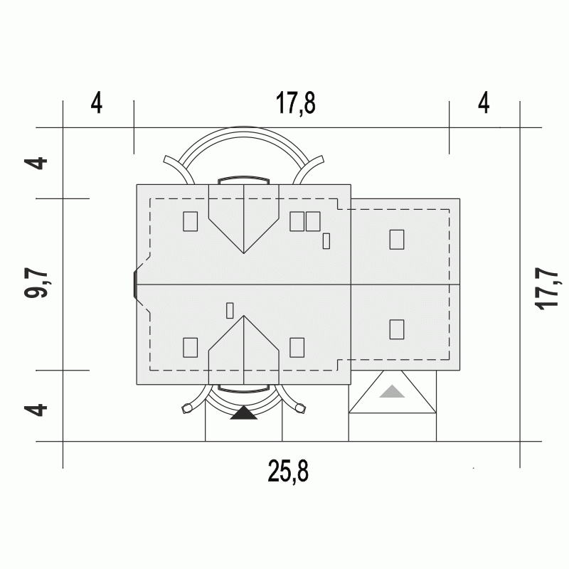- Minimalne wymiary działki17.7 x 25.8m