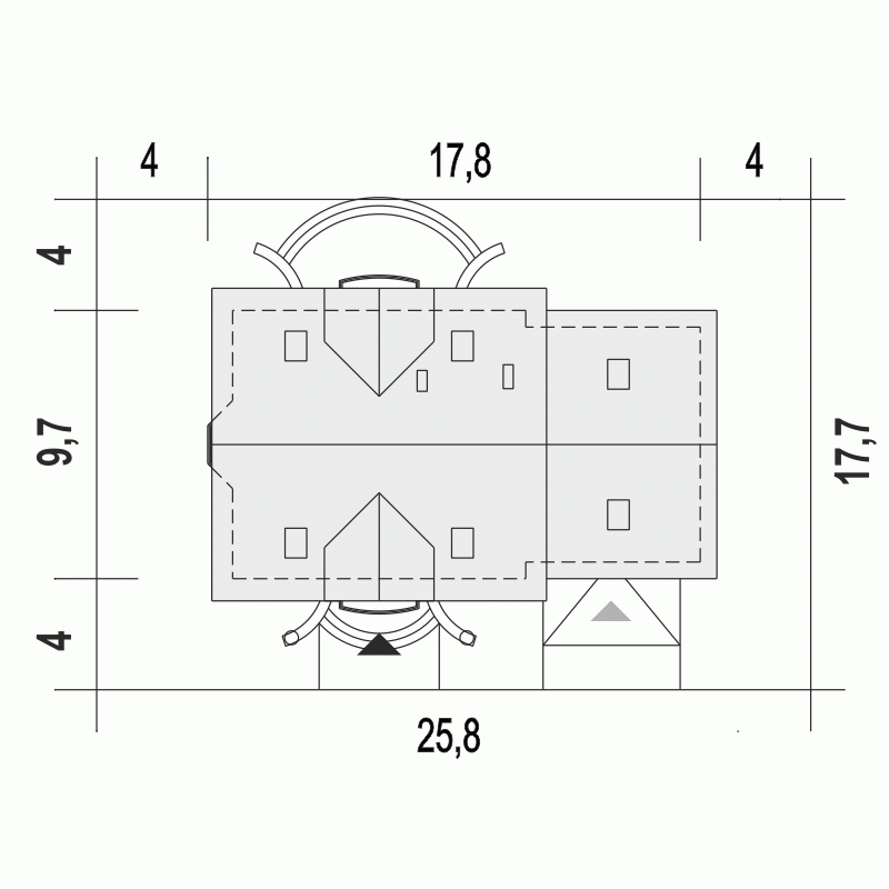 - Minimalne wymiary działki17.7 x 25.8m