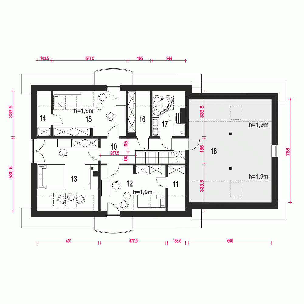 - Szerokość domu18.1 m