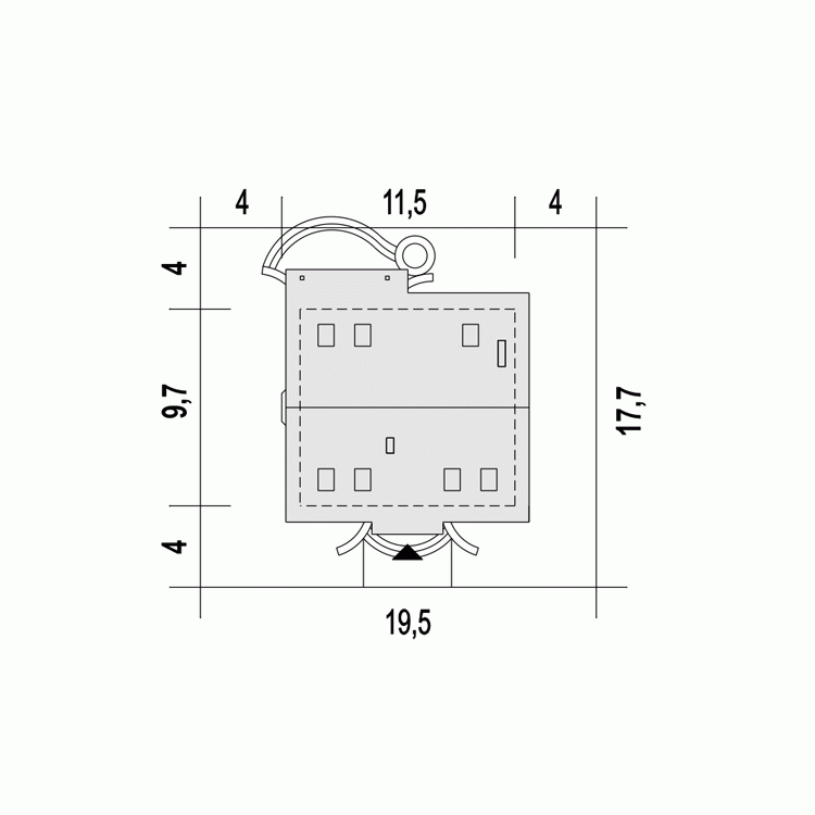 - Minimalne wymiary działki17.7 x 19.5m
