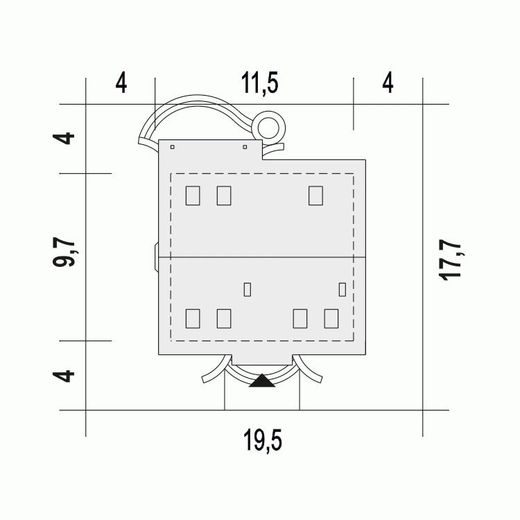 - Minimalne wymiary działki17.7 x 19.5m