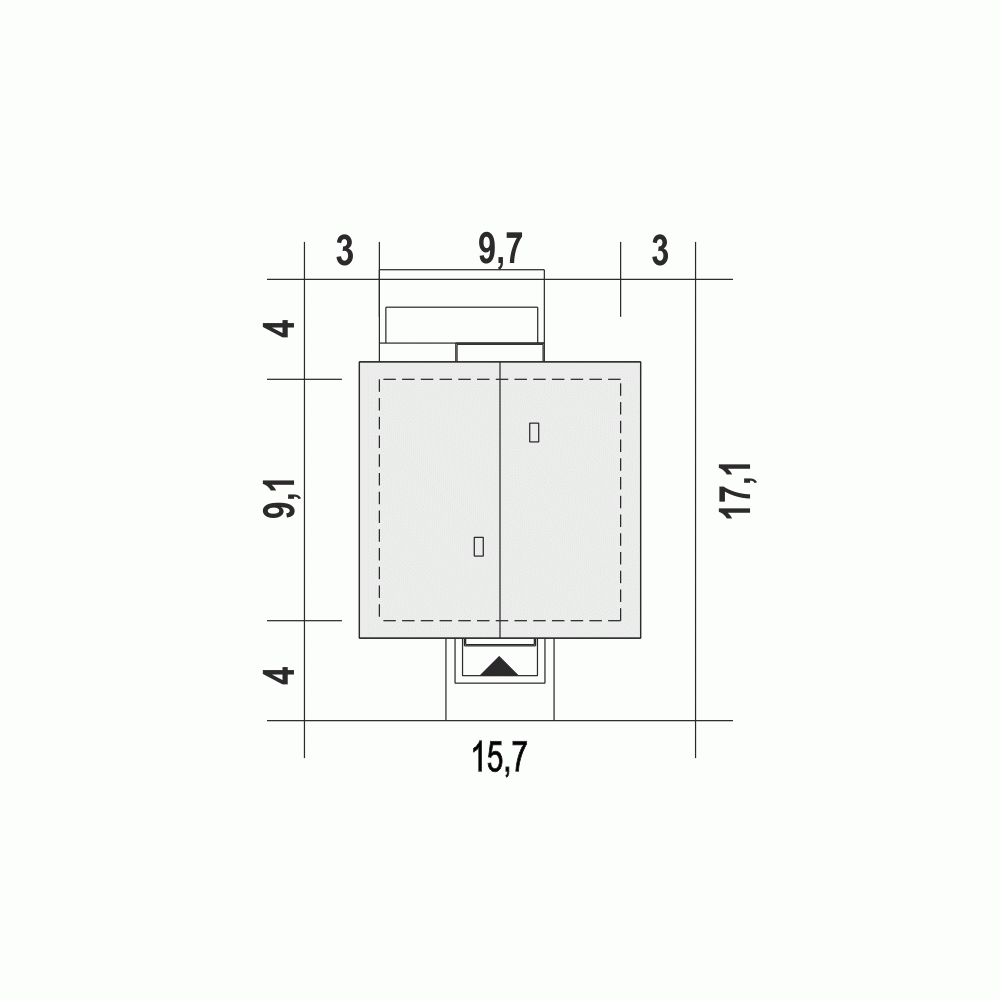 - Minimalne wymiary działki17.1 x 15.7m