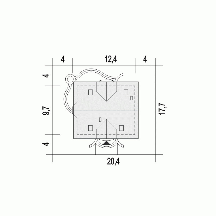 - Minimalne wymiary działki17.7 x 20.4m